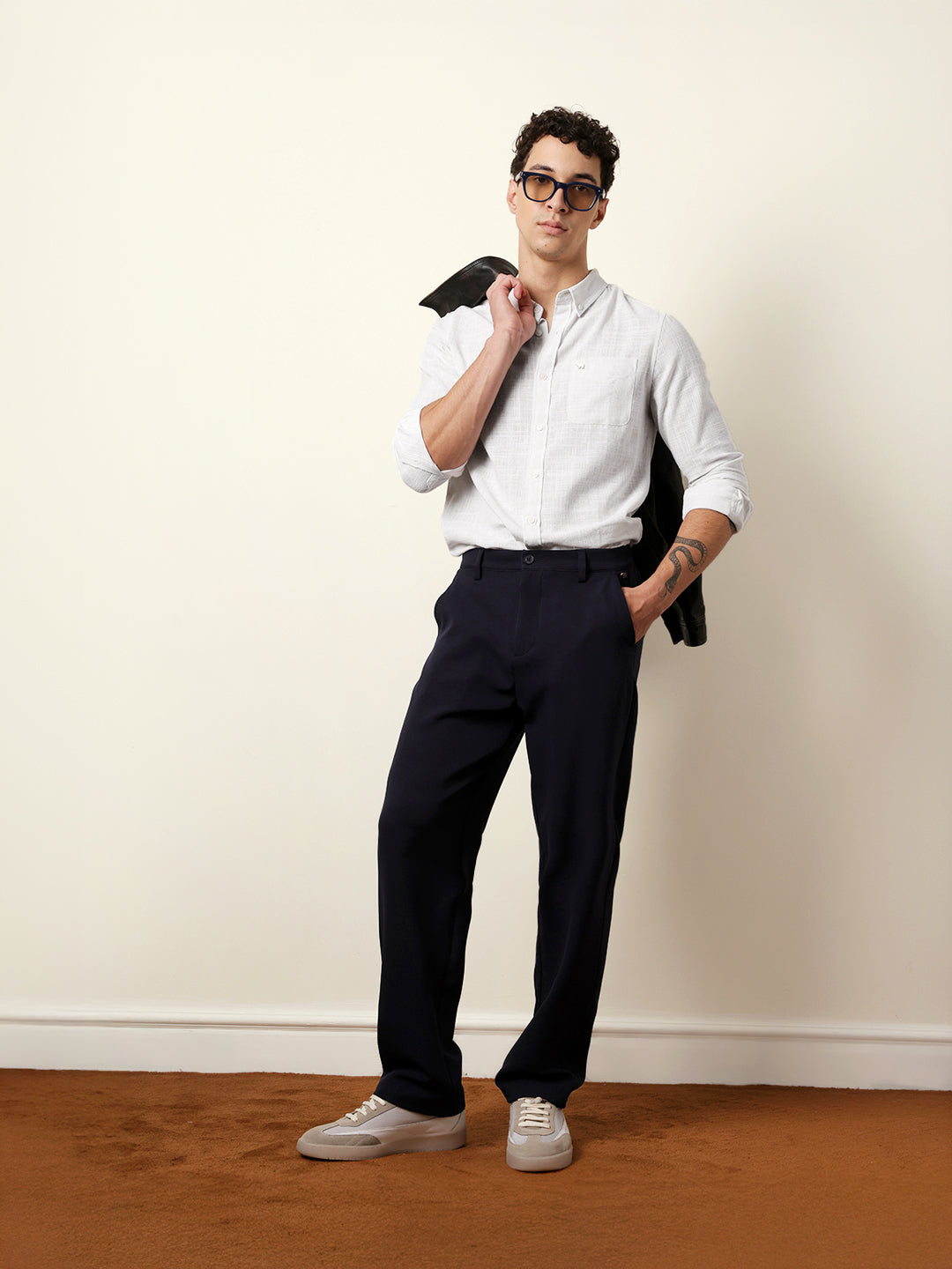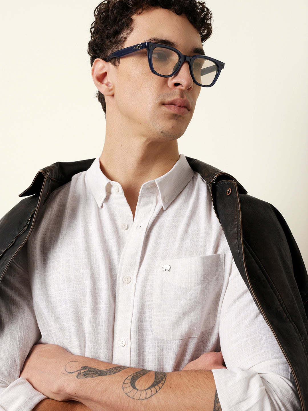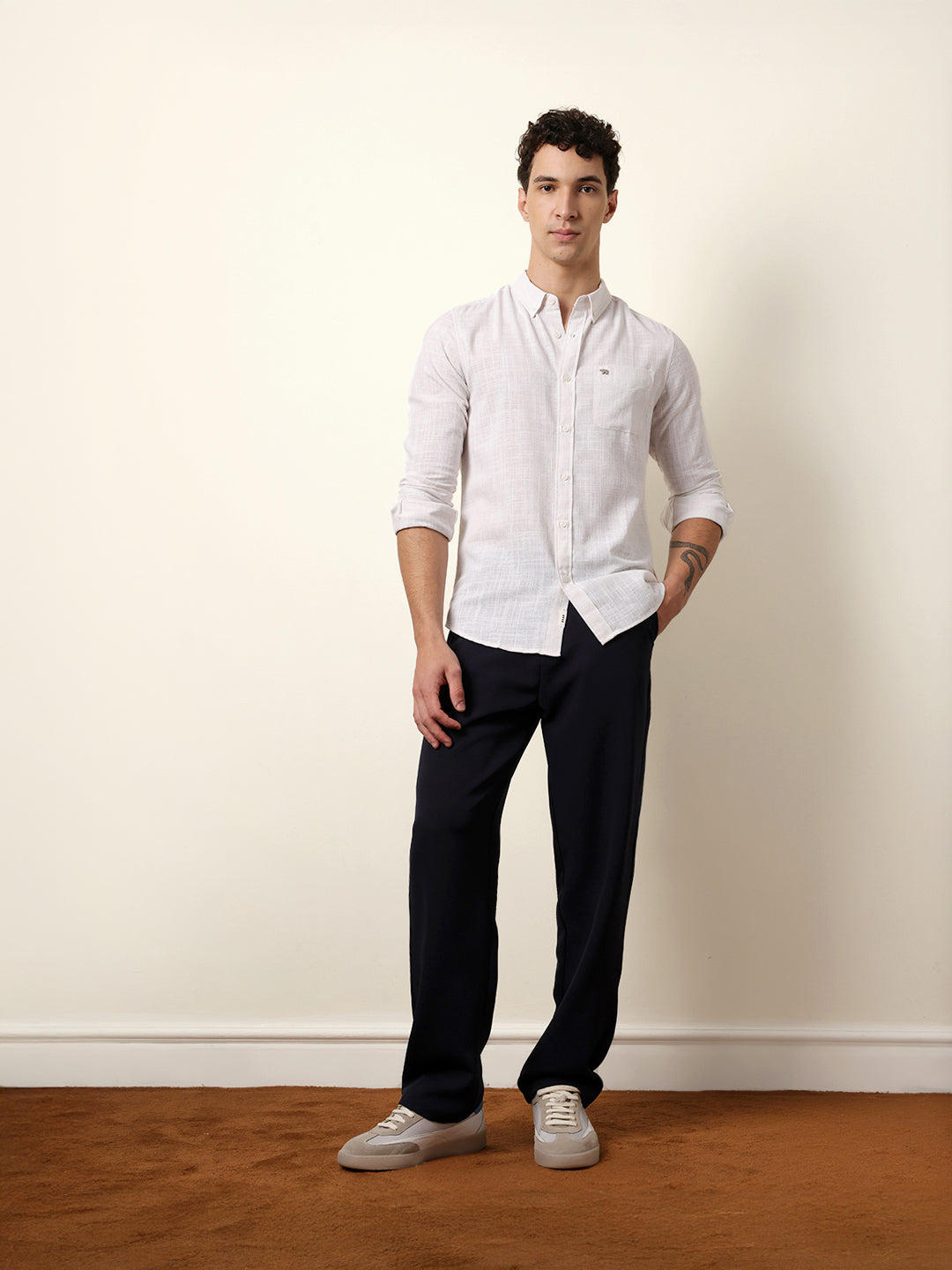 Shop White Slub-Textured Woven Slim Fit Casual Shirt Online.