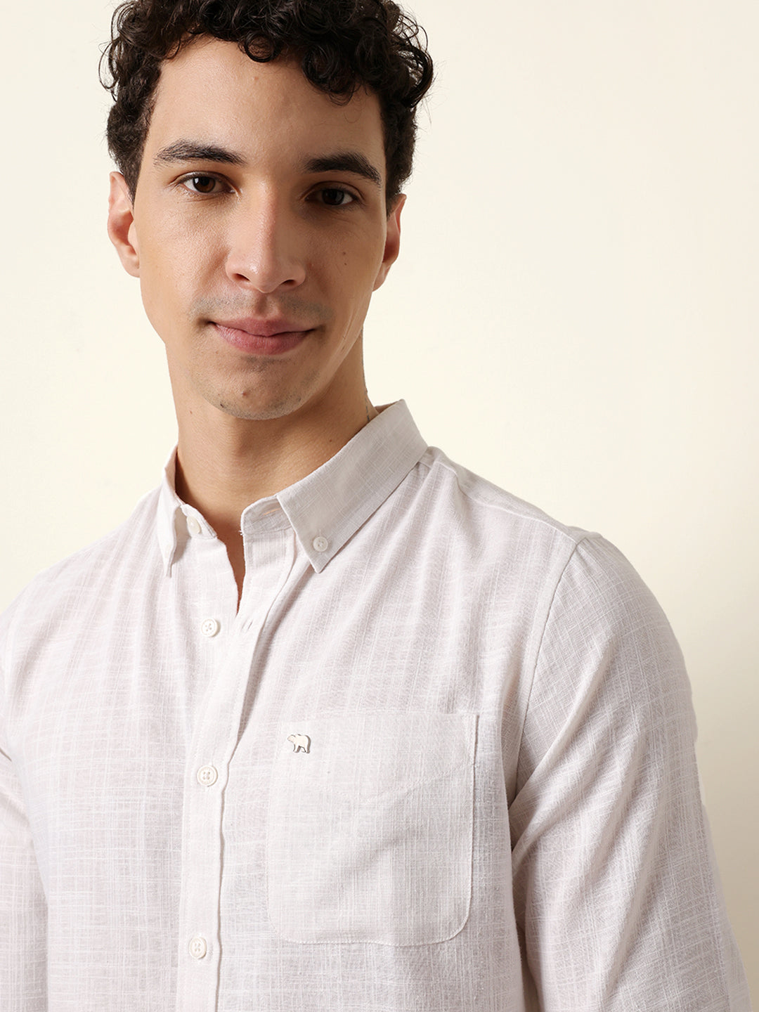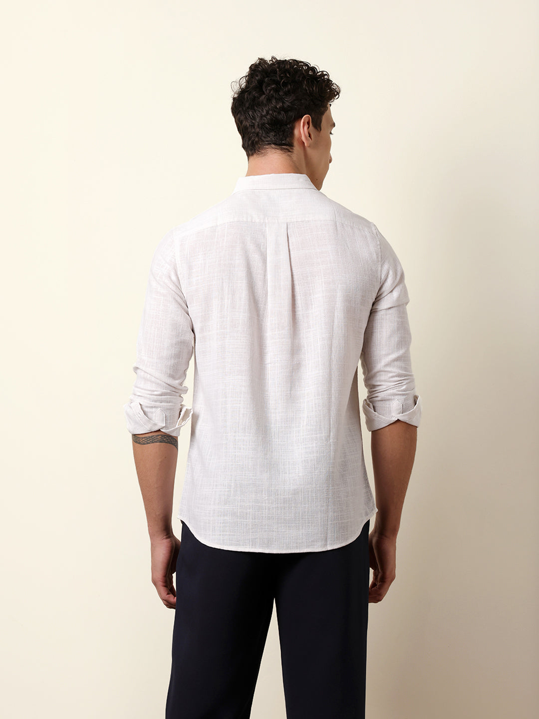 White Slub-Textured Woven Slim Fit Casual Shirt
