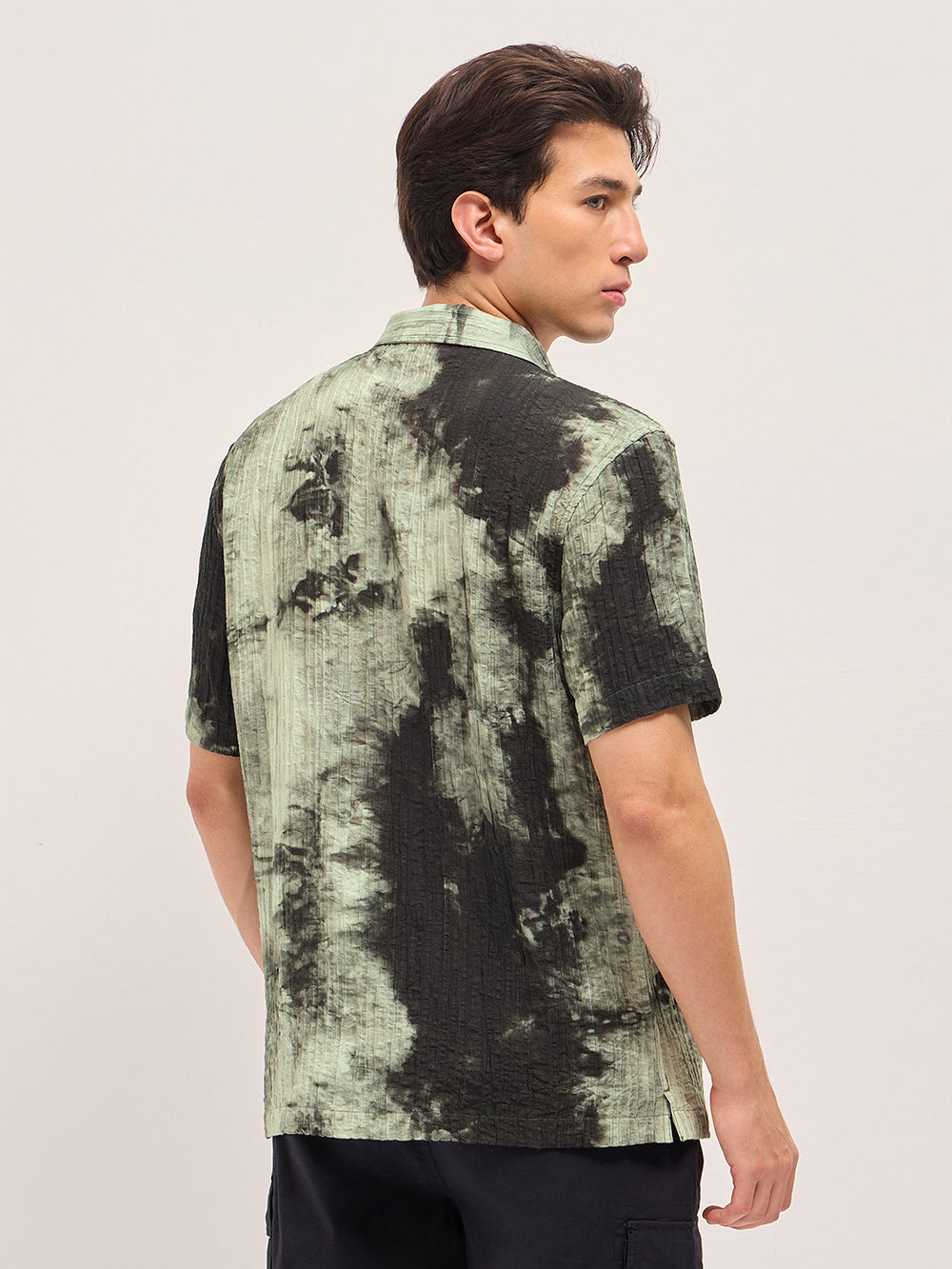 Green Viscose Abstract print Relaxed Fit Cuban Collar Shirt