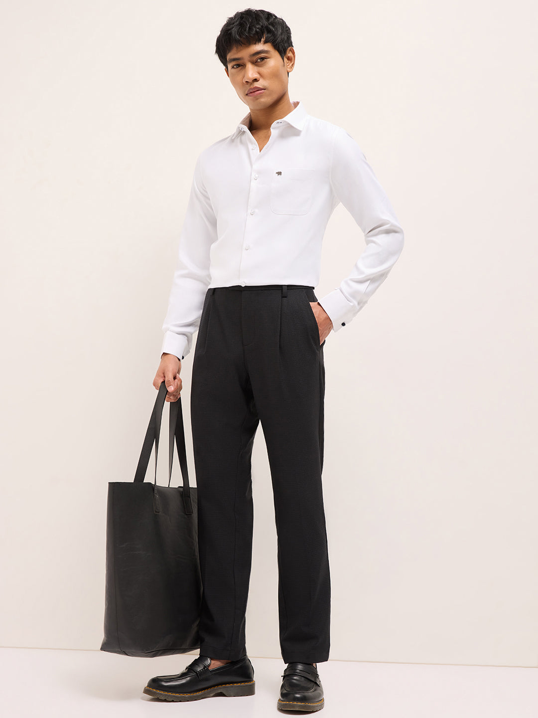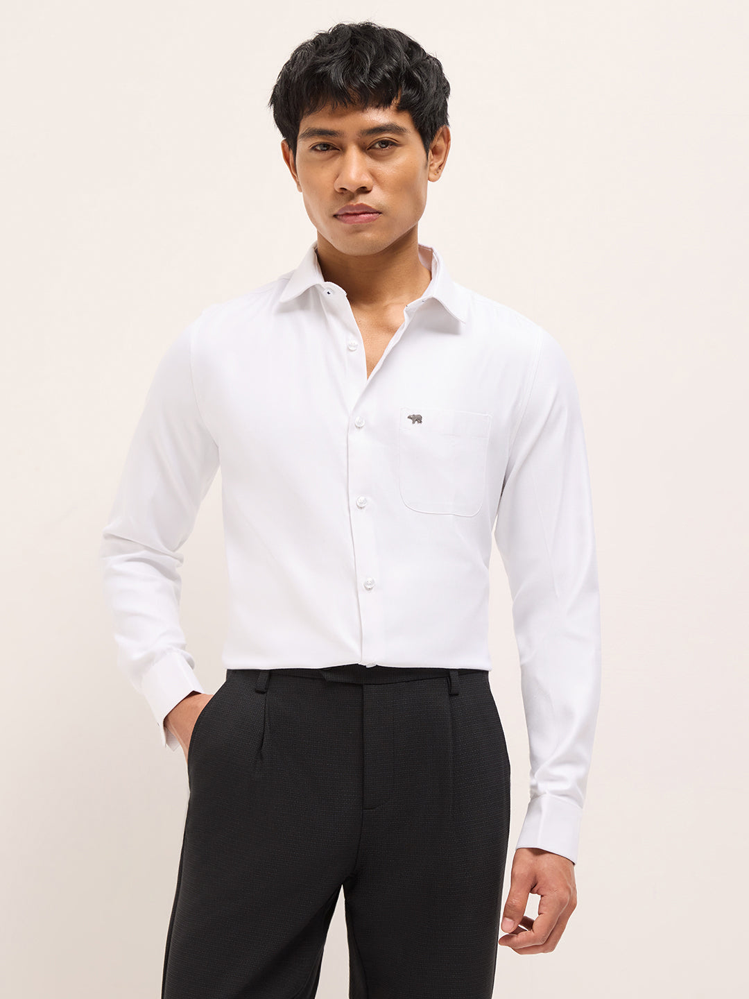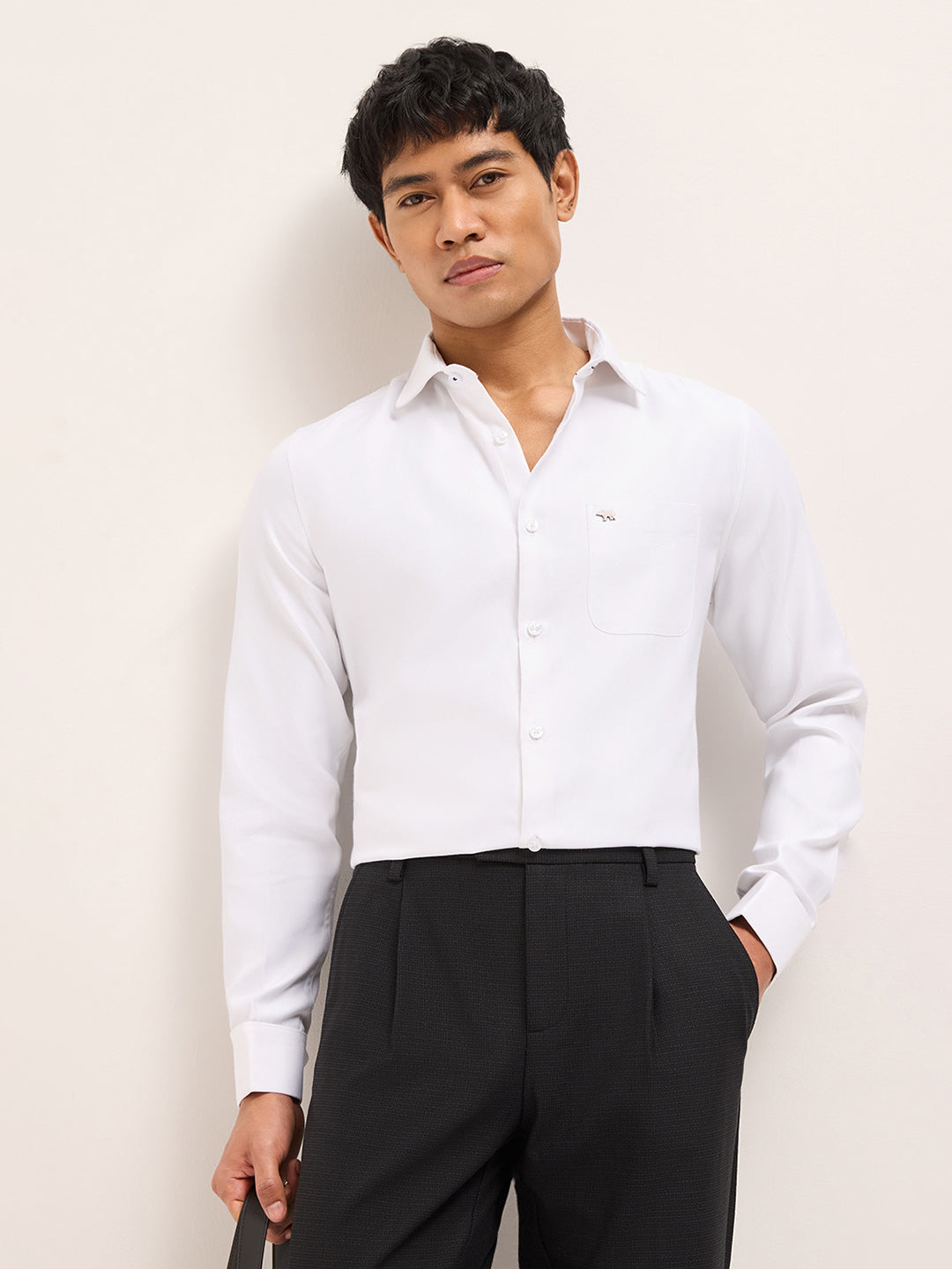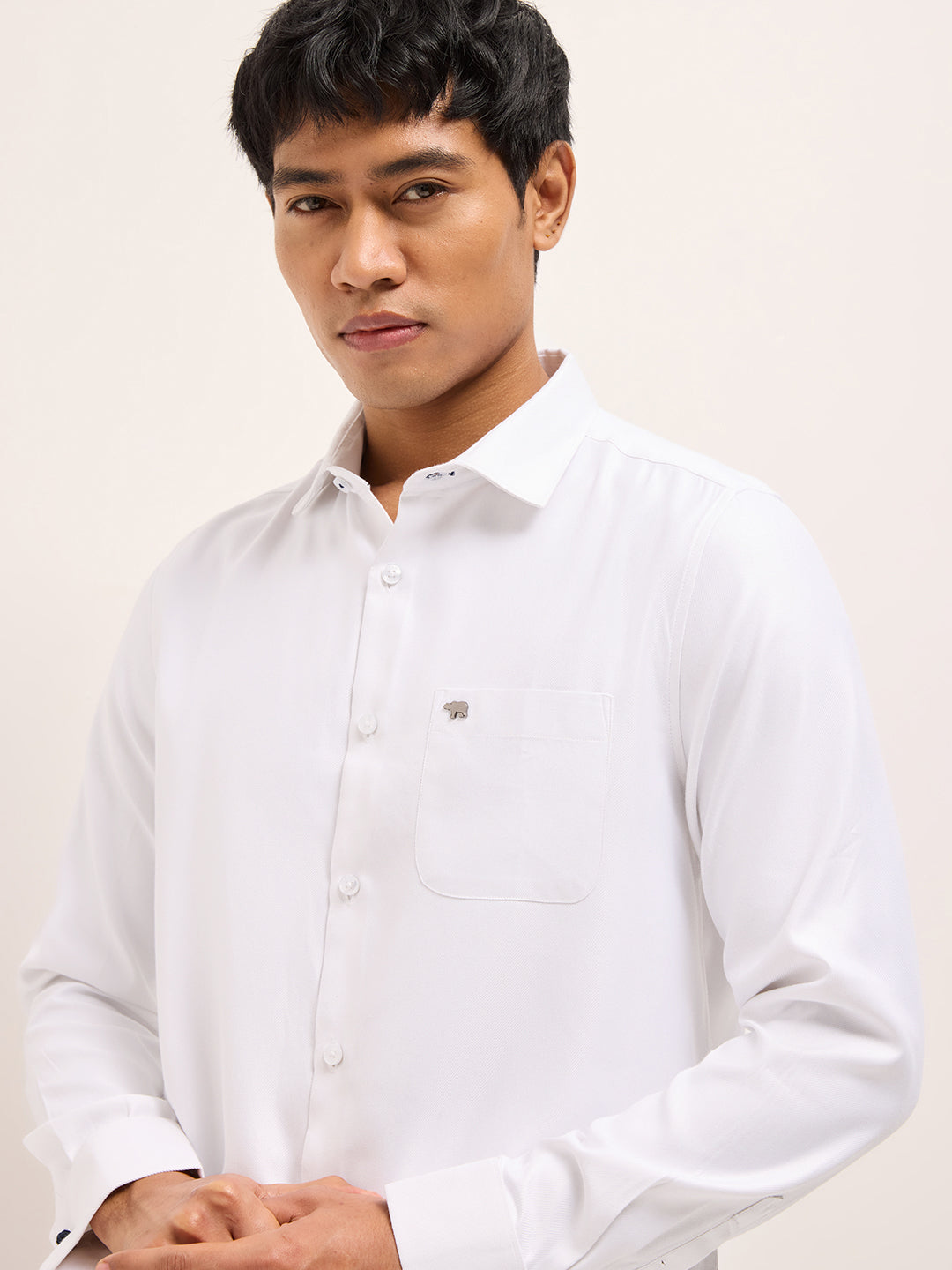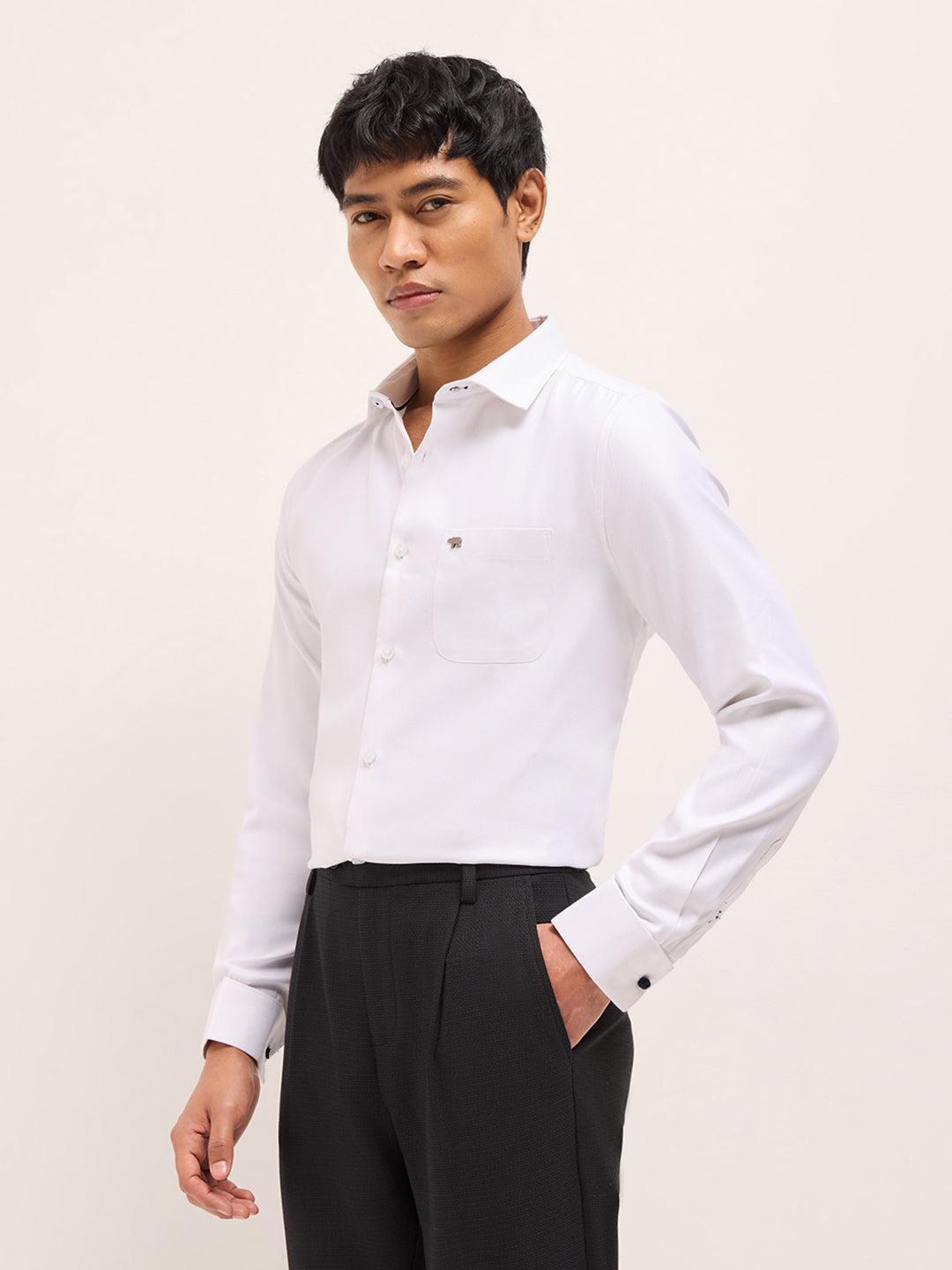 White Textured Woven Tailored Fit Formal Shirt