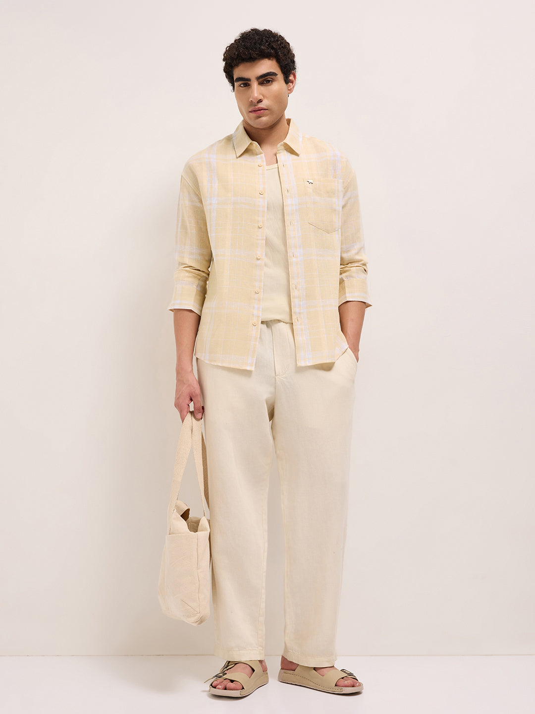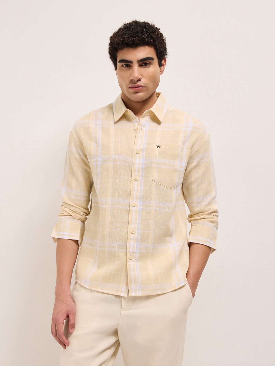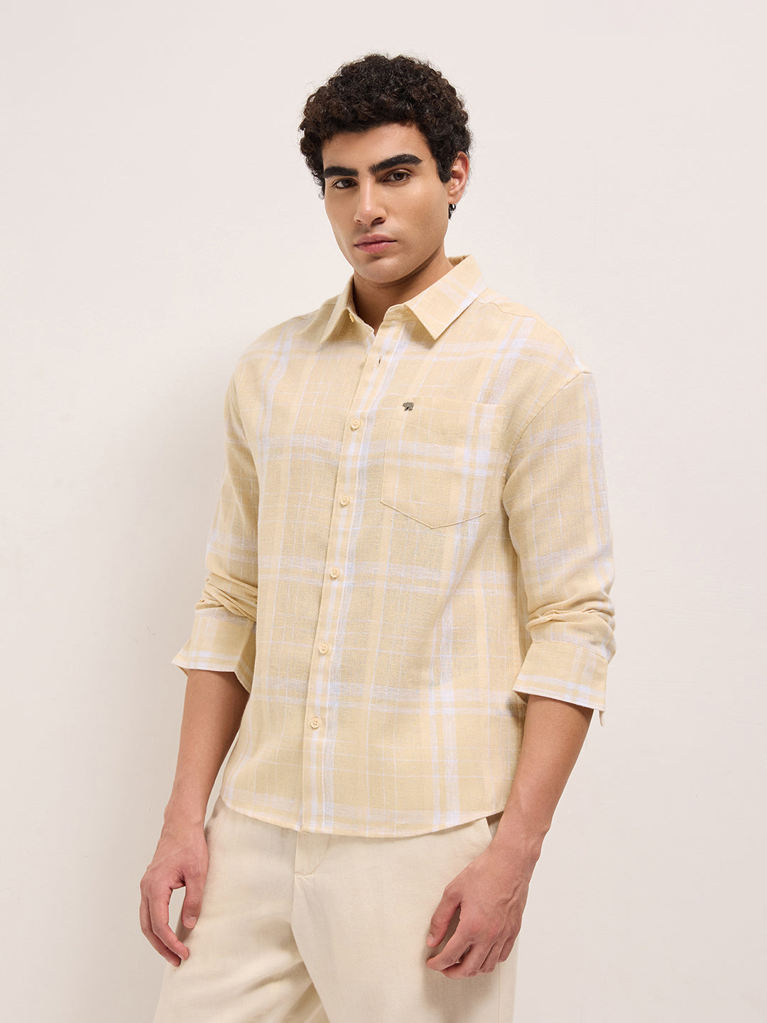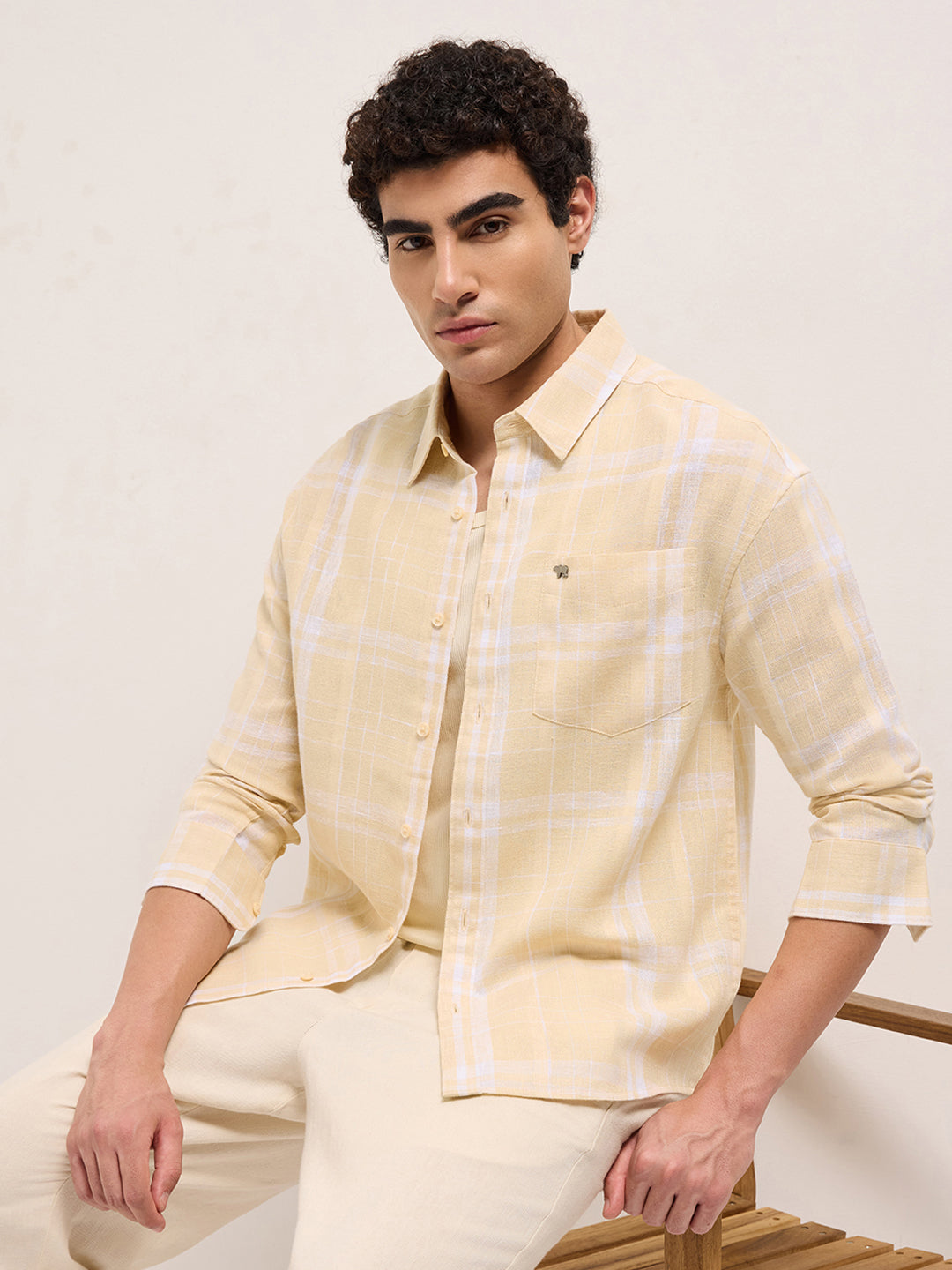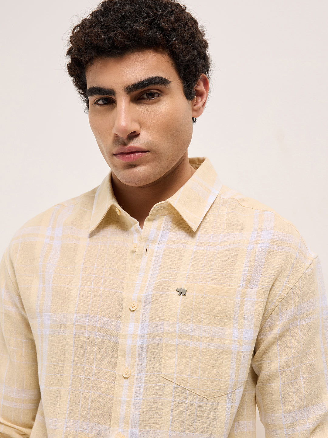 Yellow Woven Checks Relaxed Fit Casual Shirt