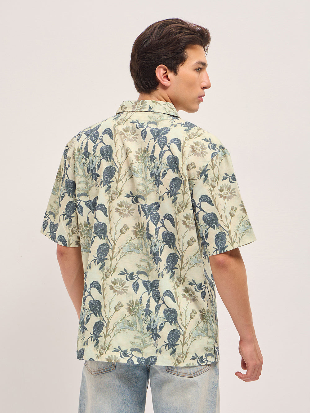 Multicolor Oversized Fit Cuban Collar Shirt with Vintage Floral Print