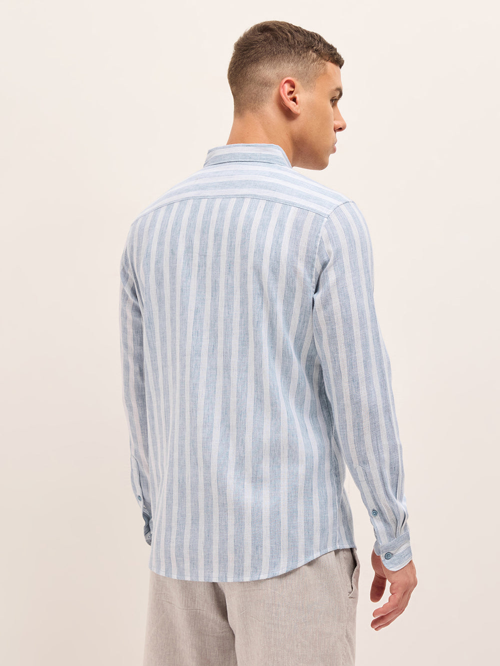 Blue Slim Fit Vertical Striped Cotton Casual Shirt