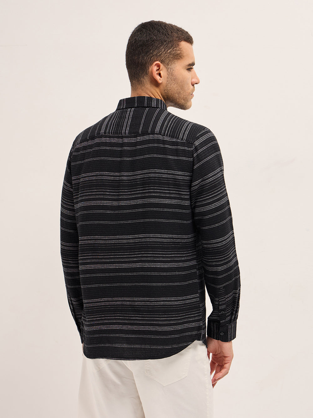 Black Horizontal Stripe Slim Fit Casual Shirt