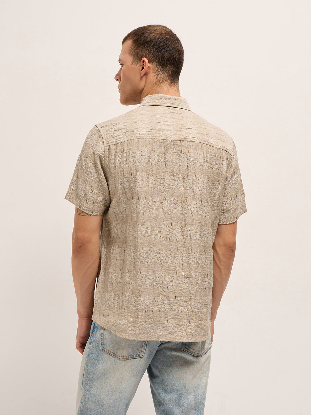 Beige Crinkle Textured Regular Fit Half-Sleeve Casual Shirt