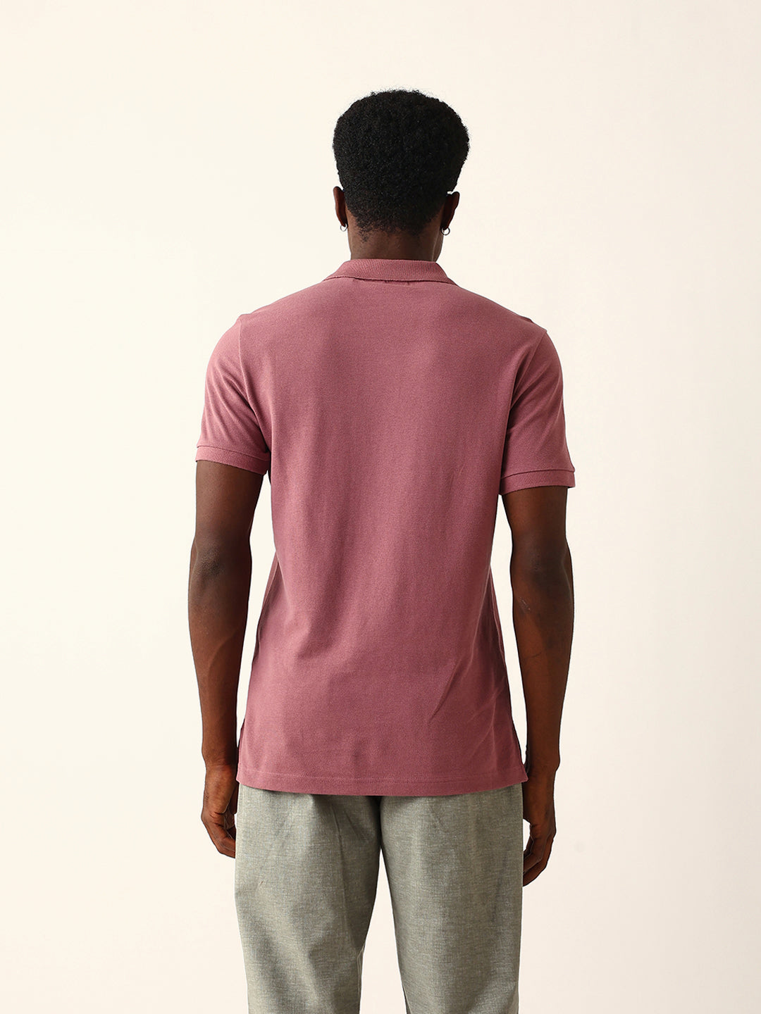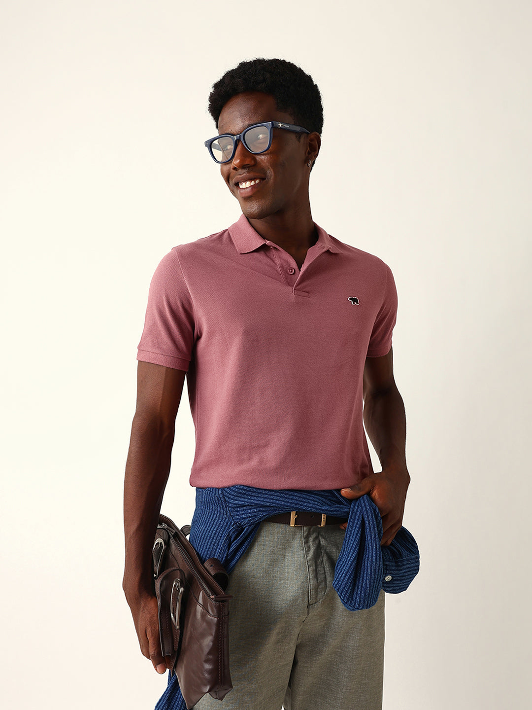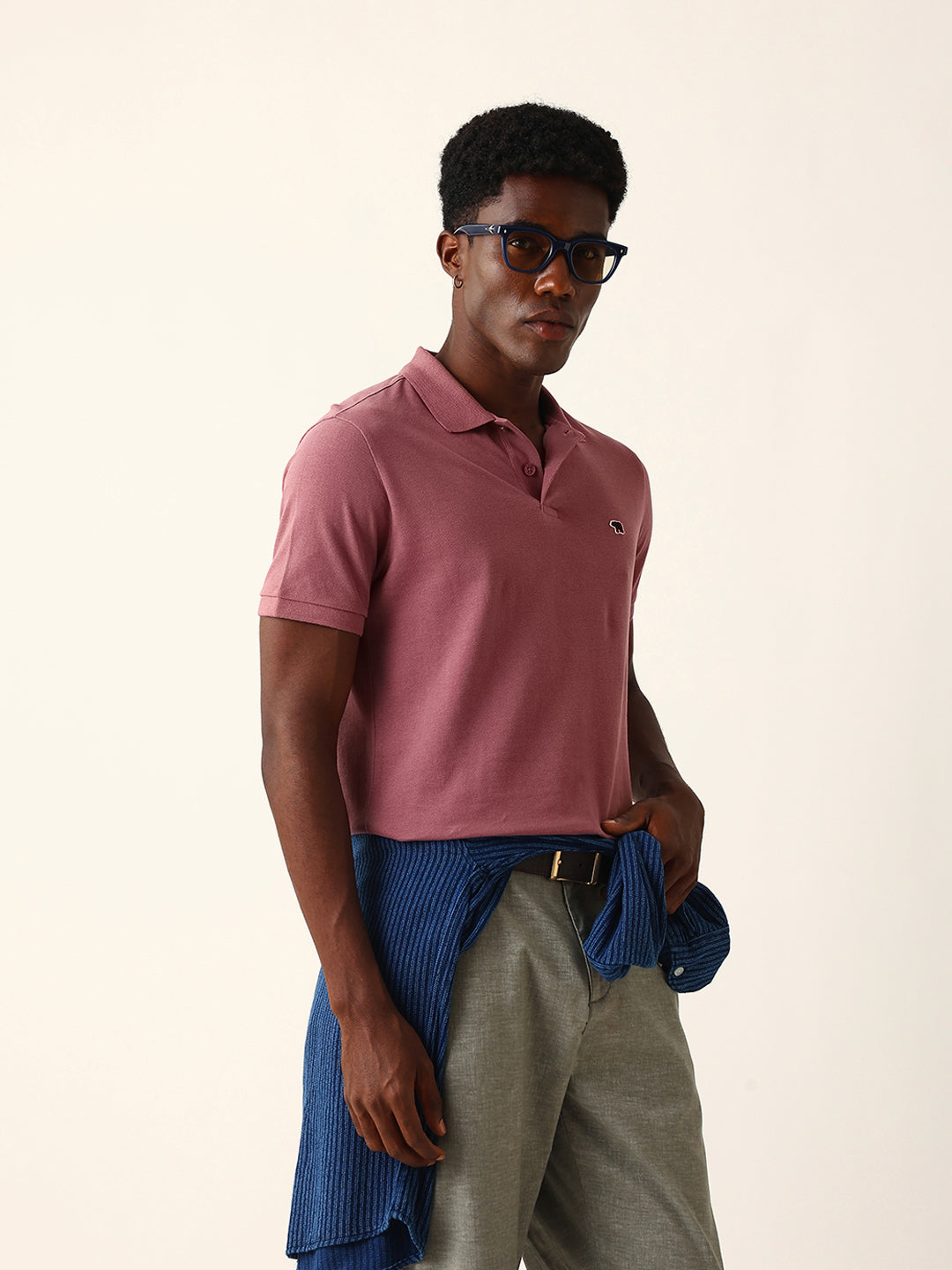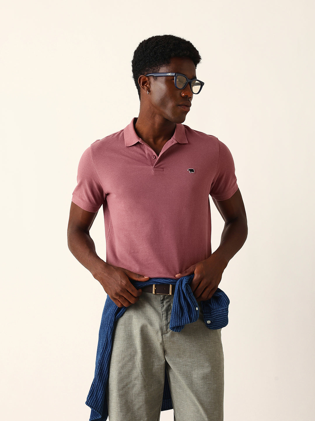 Pink Solid Slim Fit Polo with Embroidered Chest Logo