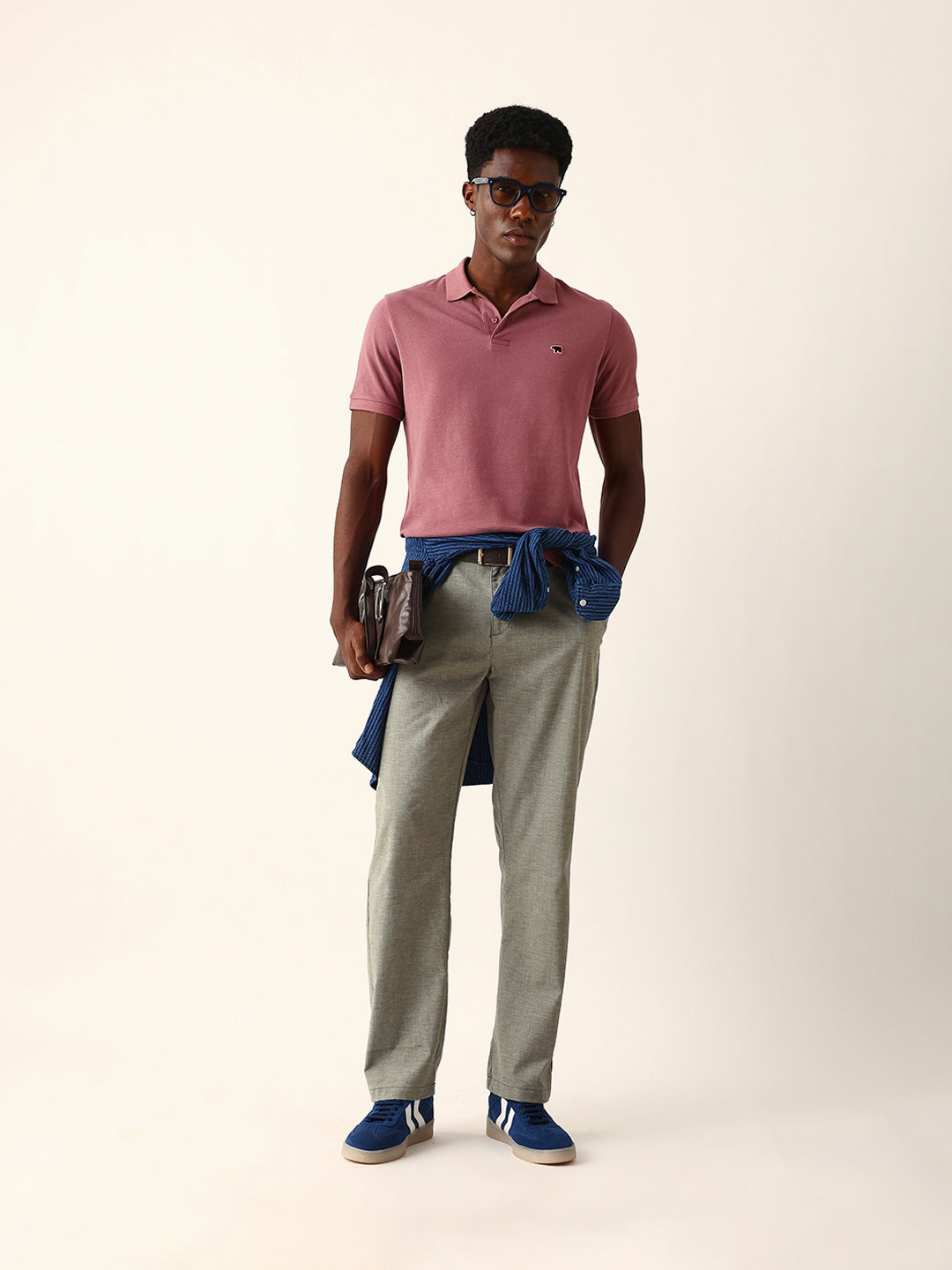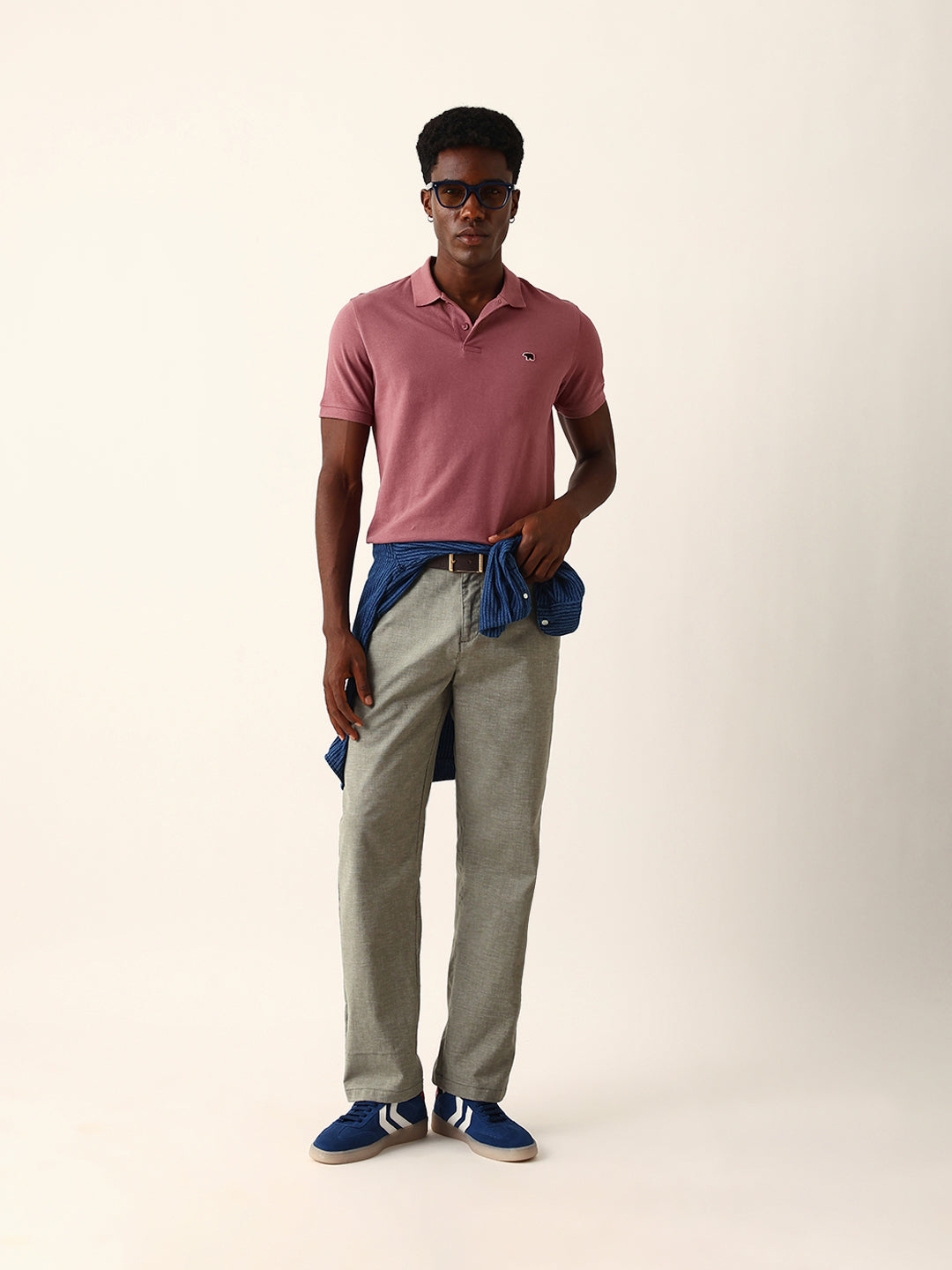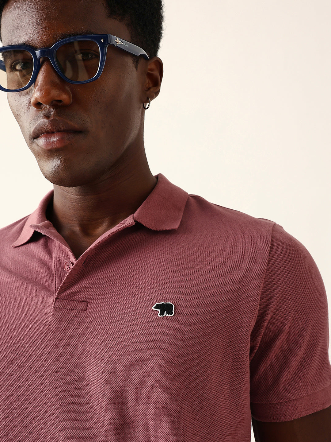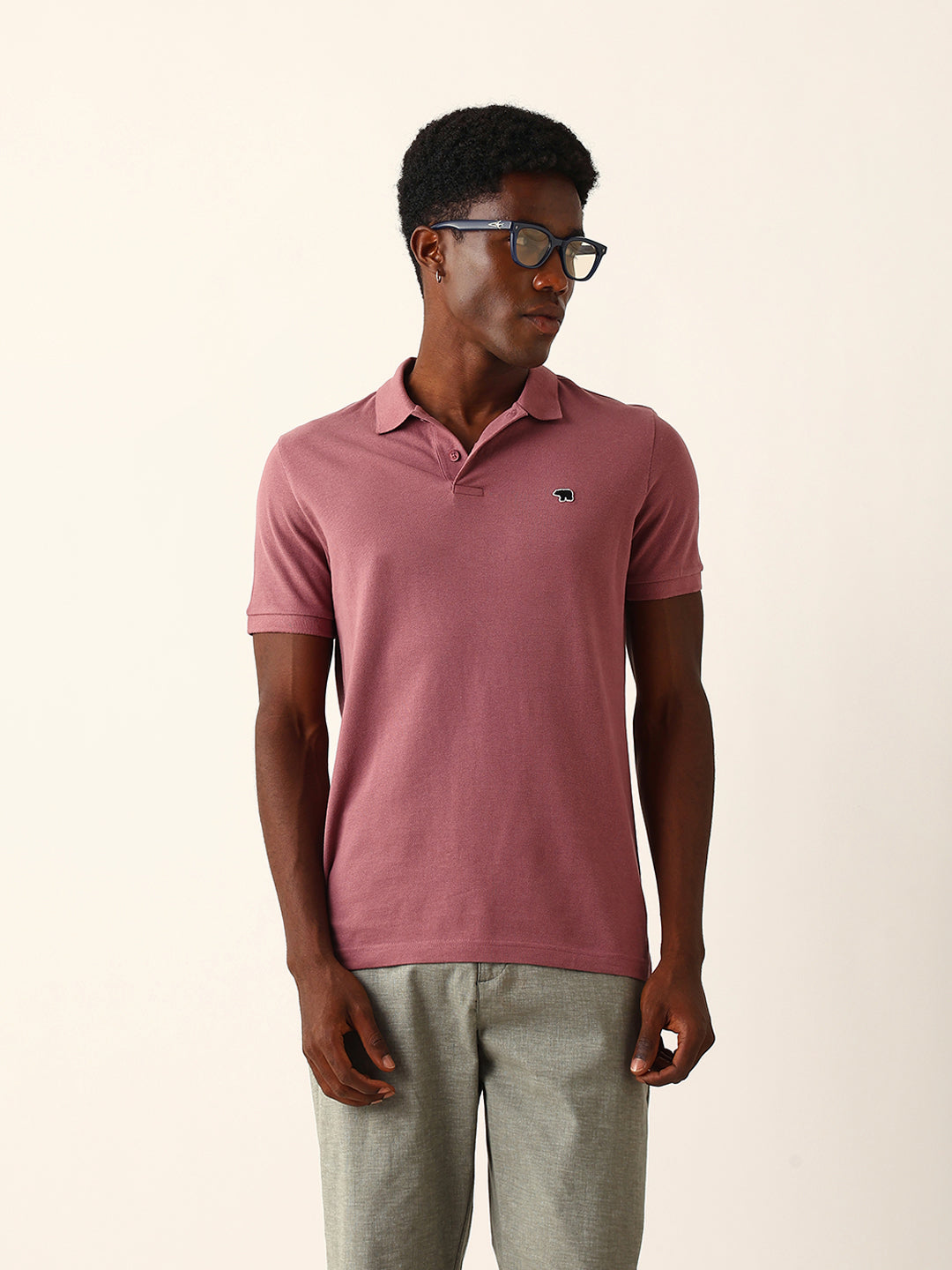 Pink Solid Slim Fit Polo with Embroidered Chest Logo