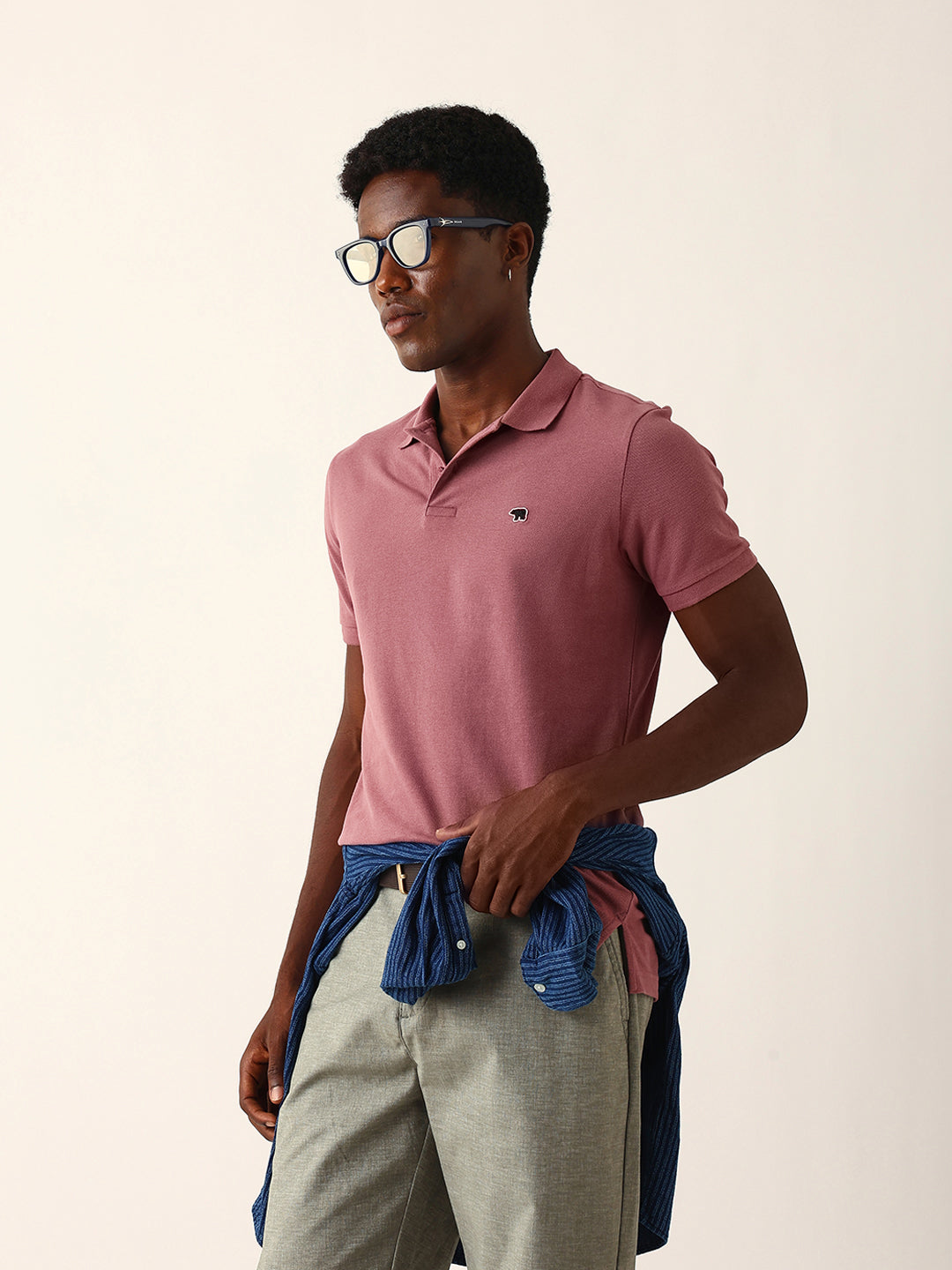 Shop Pink Solid Slim Fit Polo with Embroidered Chest Logo Online.