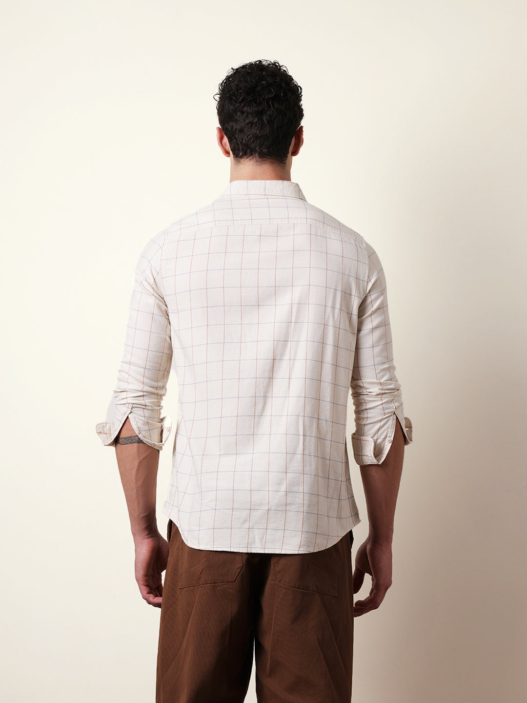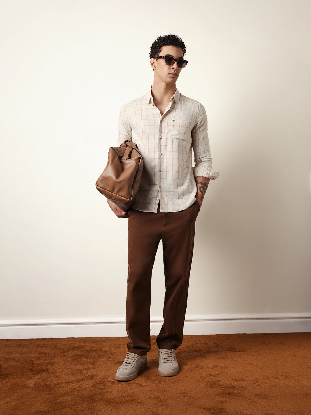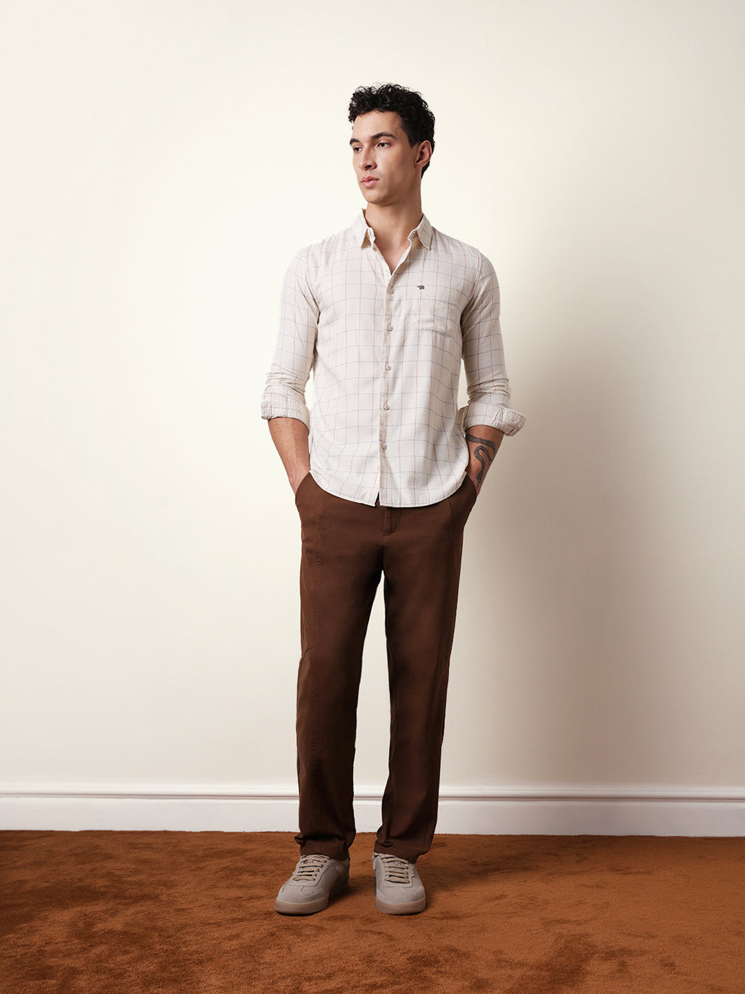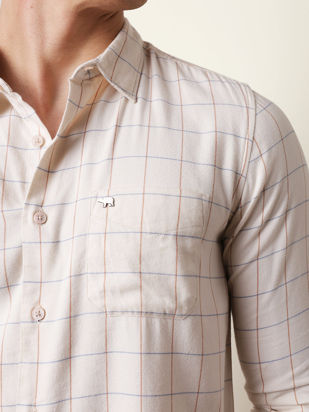 Cream Slim Fit Casual Shirt with Woven Block Checks