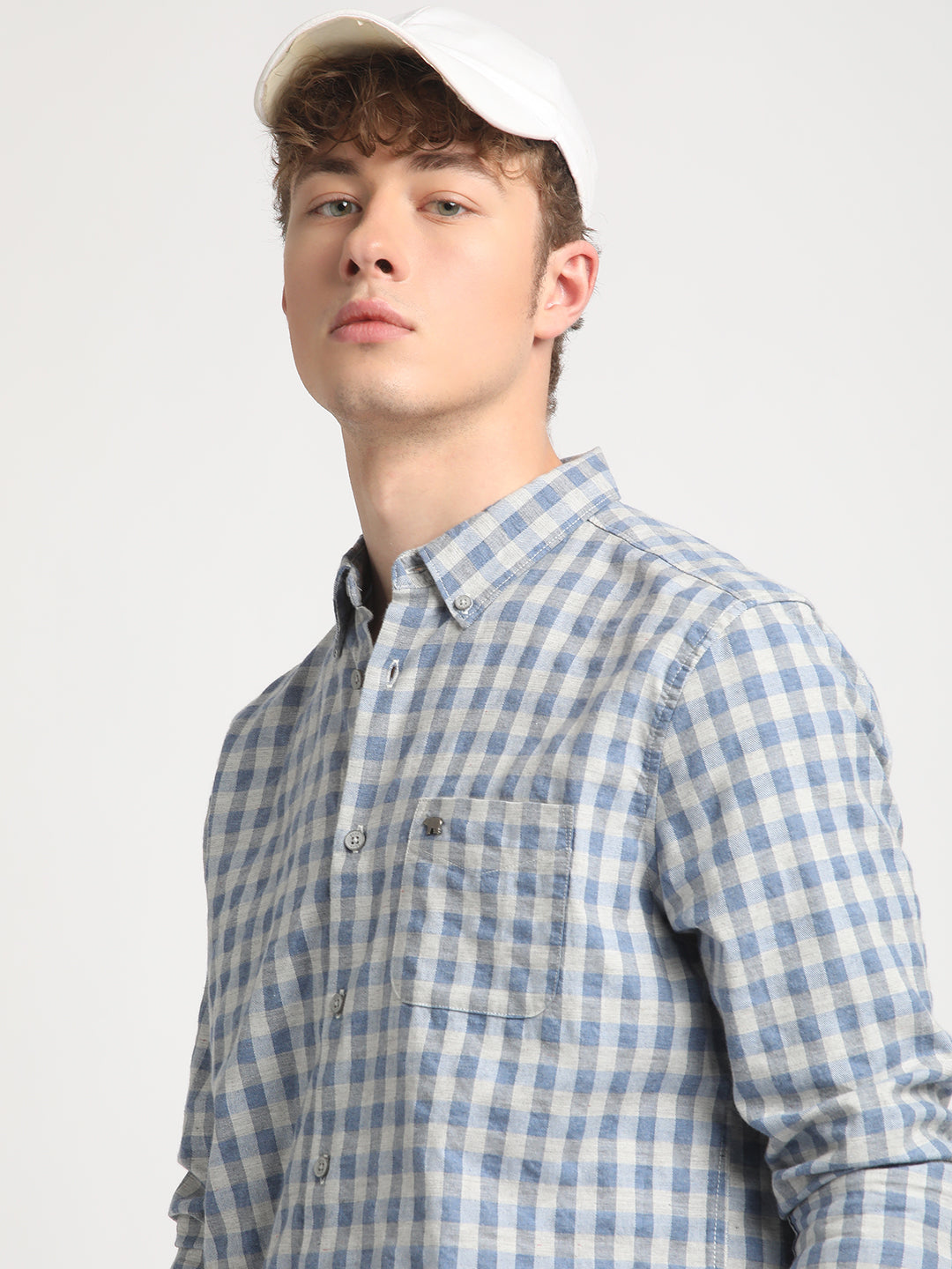 Men Blue Checked Slim Fit Cotton Casual Shirt
