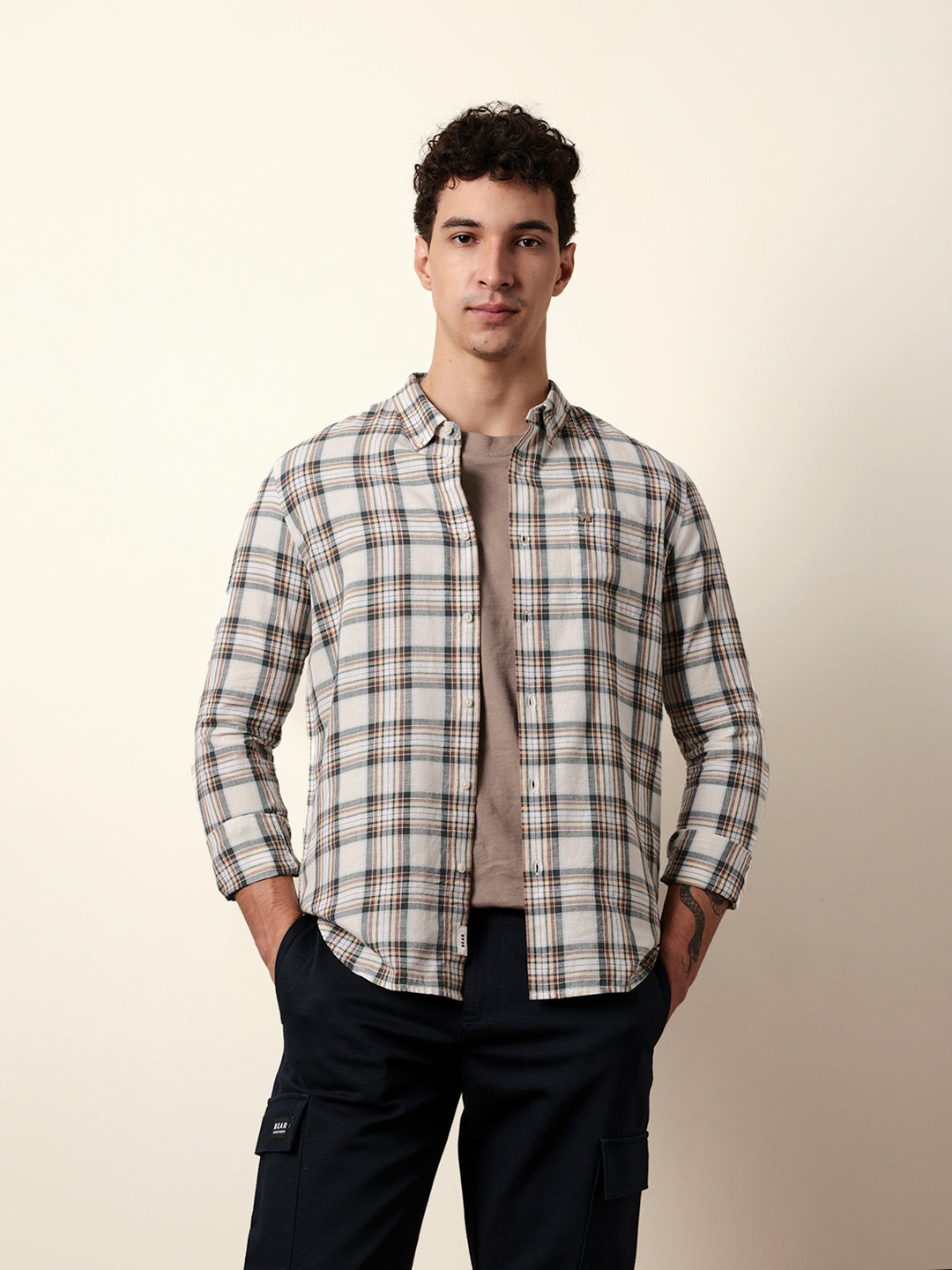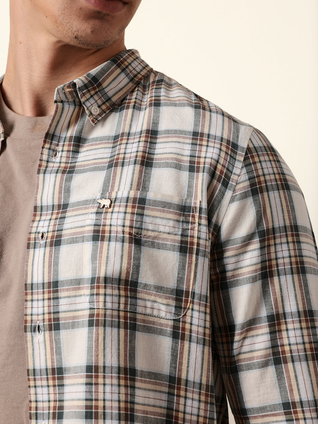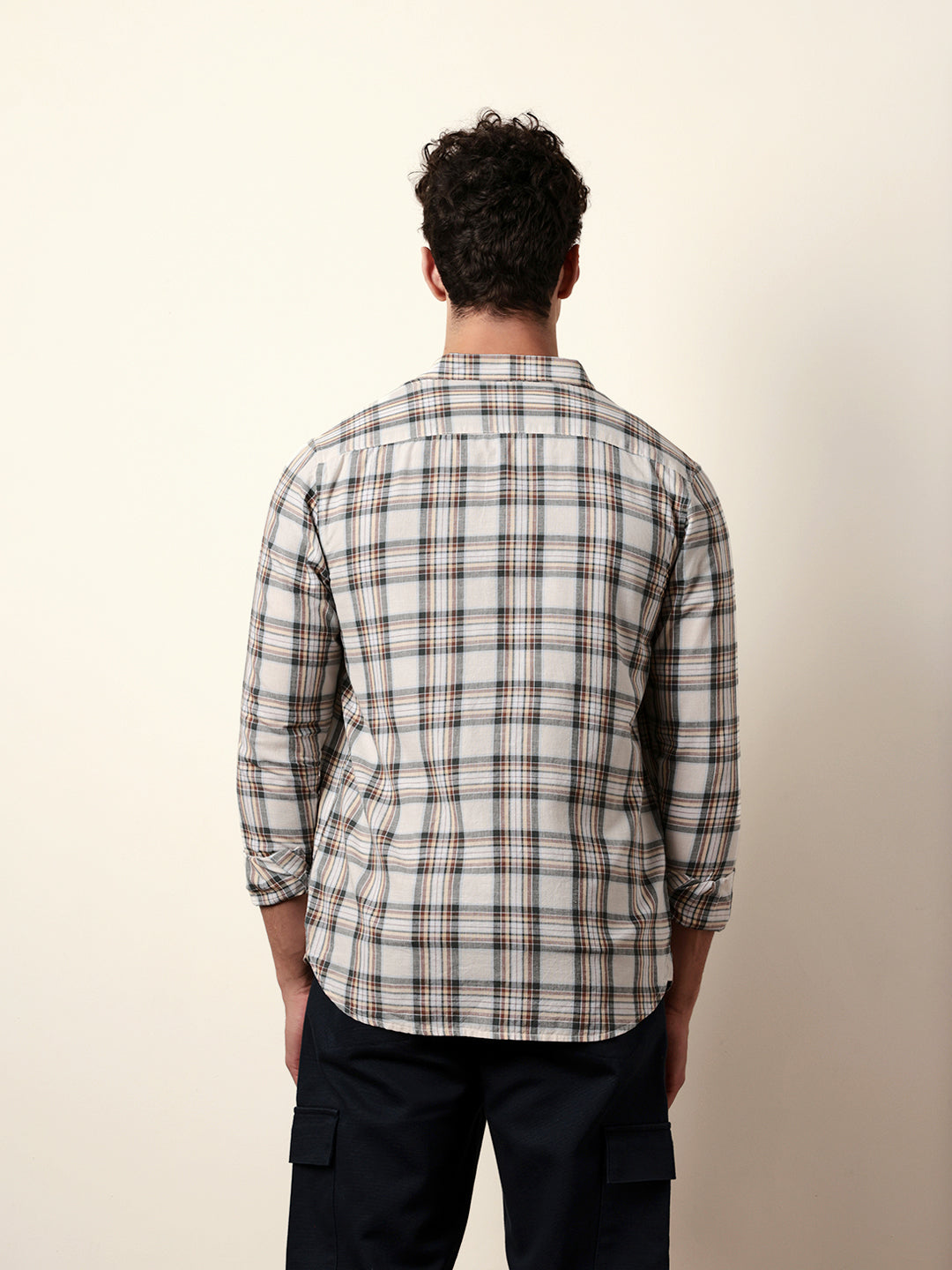 Shop Multicolor Woven Tartan Checked Slim Fit Casual Shirt Online.