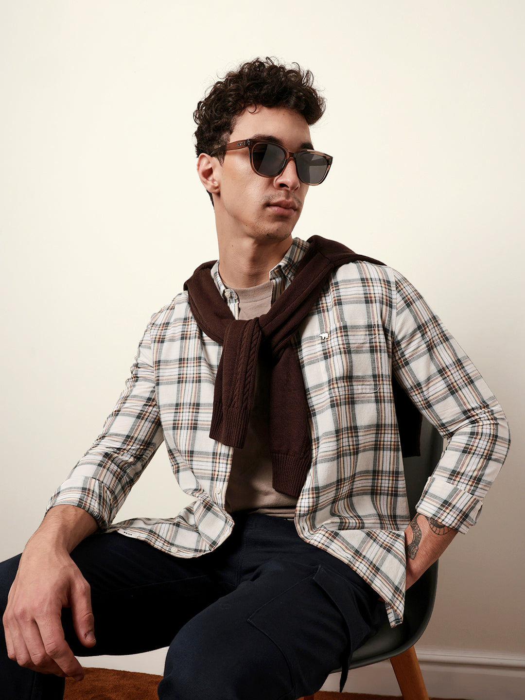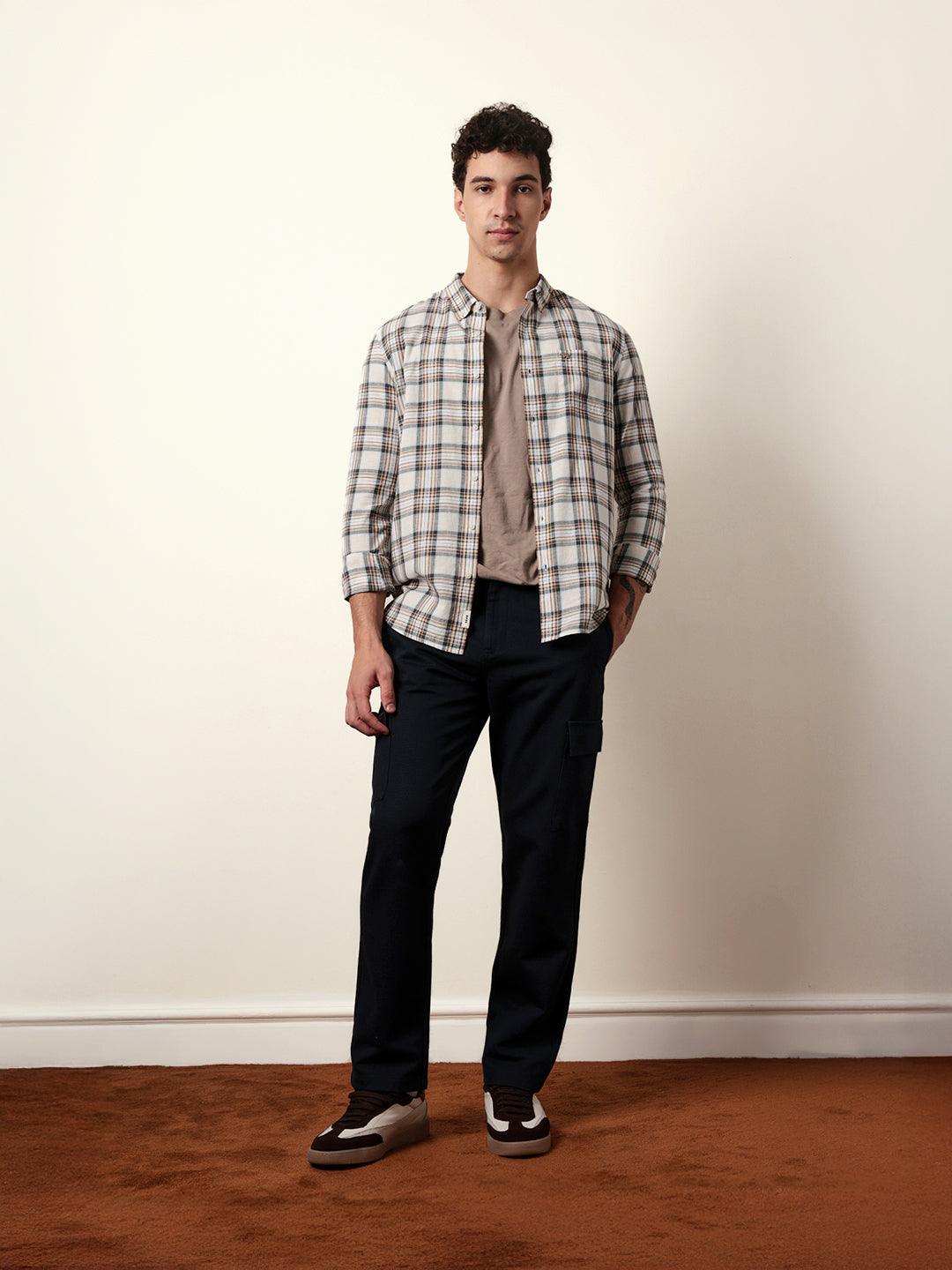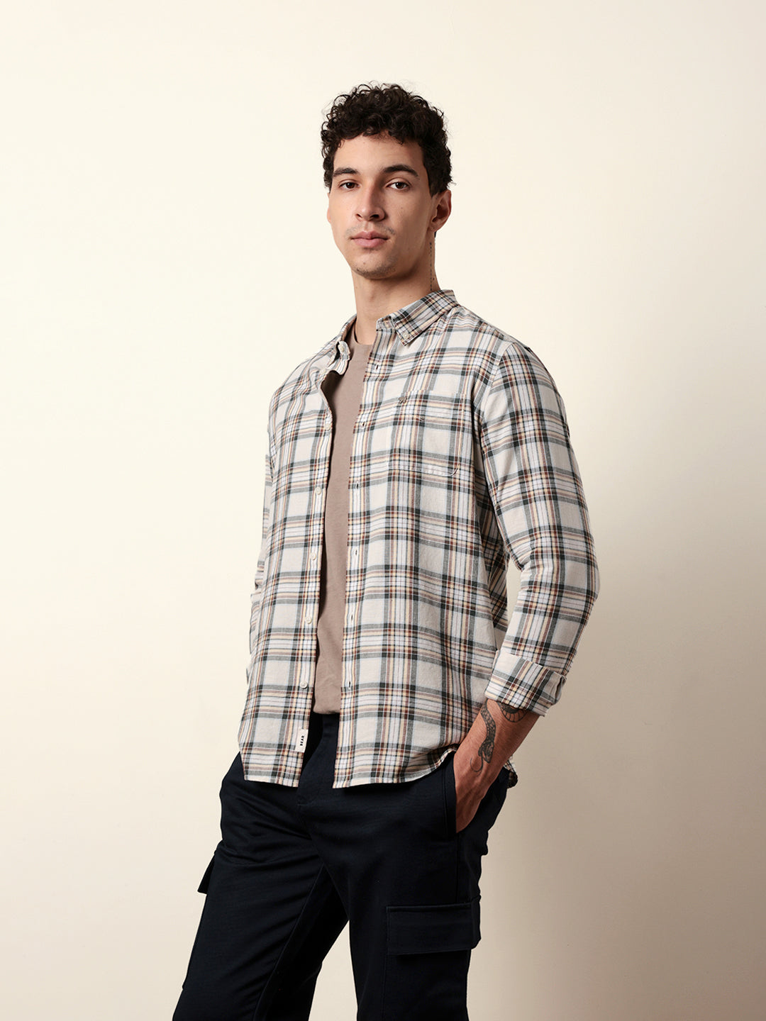 Shop Multicolor Woven Tartan Checked Slim Fit Casual Shirt Online.