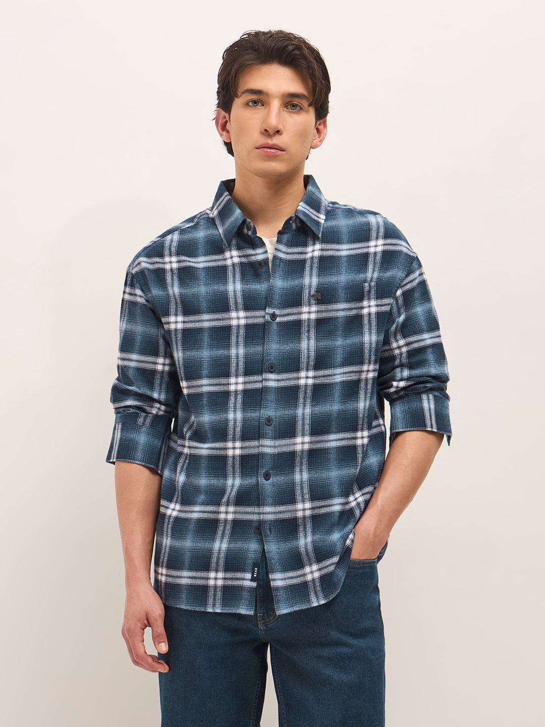Blue Flannel Woven Checks Relaxed Fit Casual Shirt