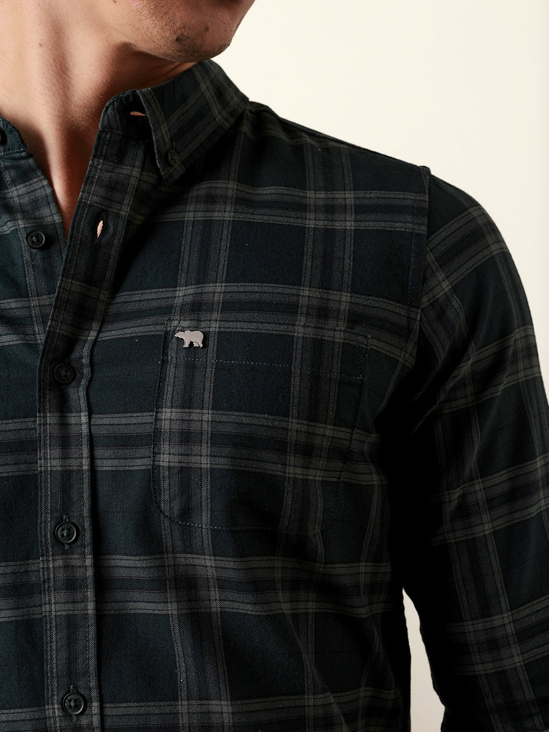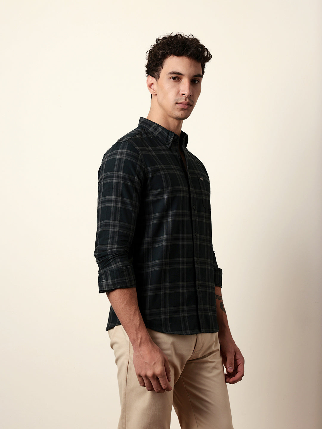 Dark Green Woven Tartan Checked Slim Fit Casual Shirt