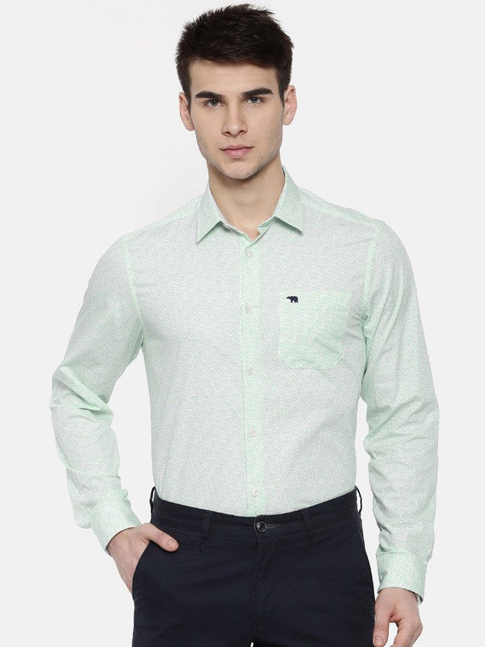 Shop Men Green Tailored Fit Semi-Formal Shirt Online