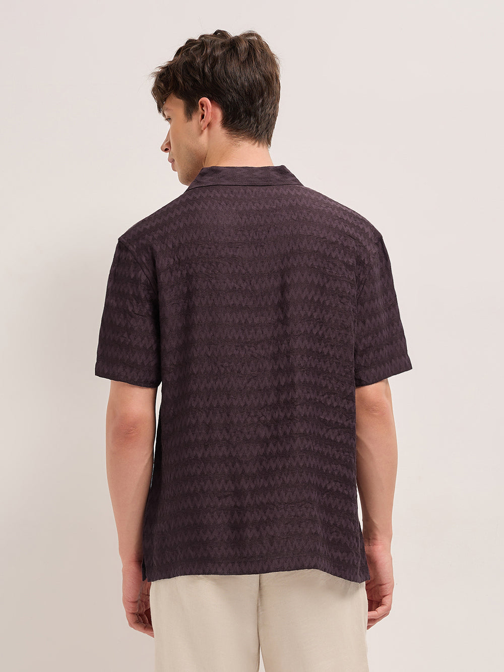 Purple Zigzag Textured Weave Relaxed Fit Half Sleeve Casual Shirt