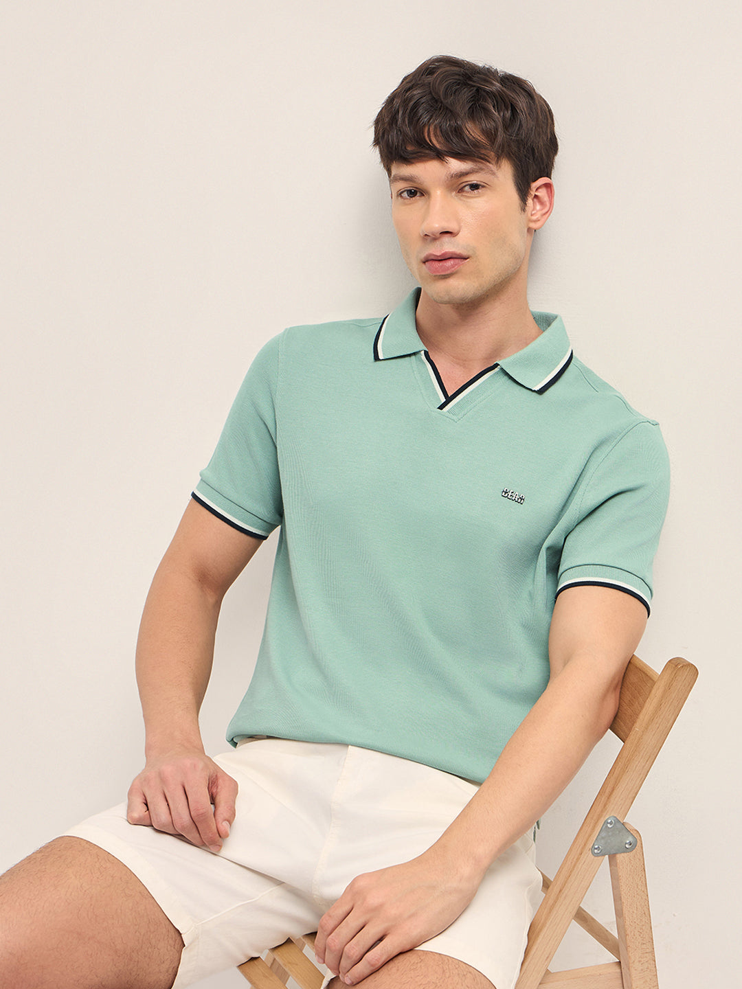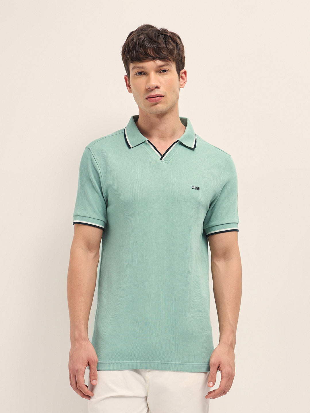 Shop Light Green Solid Slim Fit Polo with Contrast Tipping Detail Online.