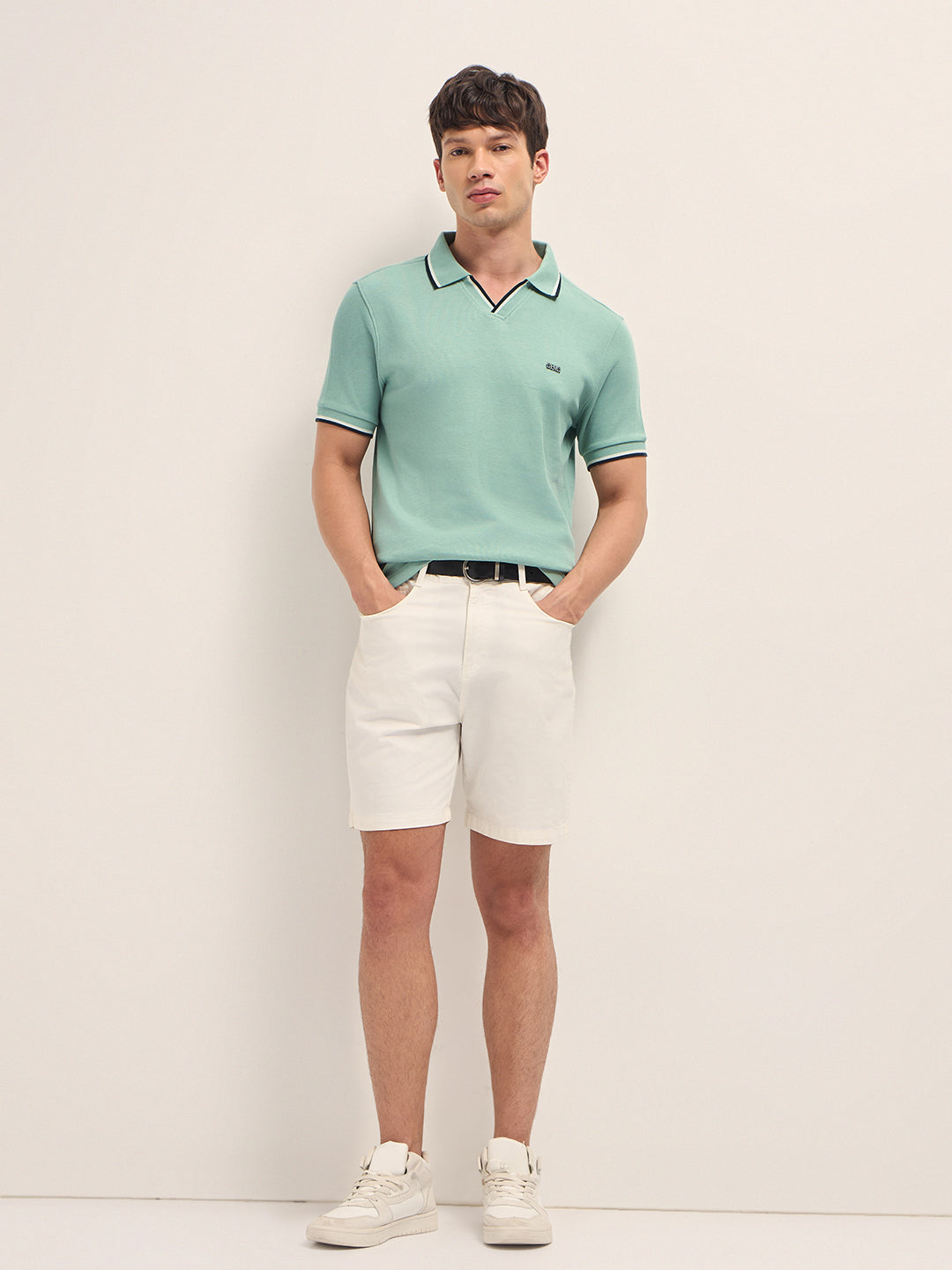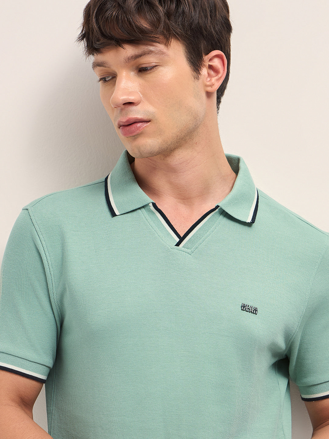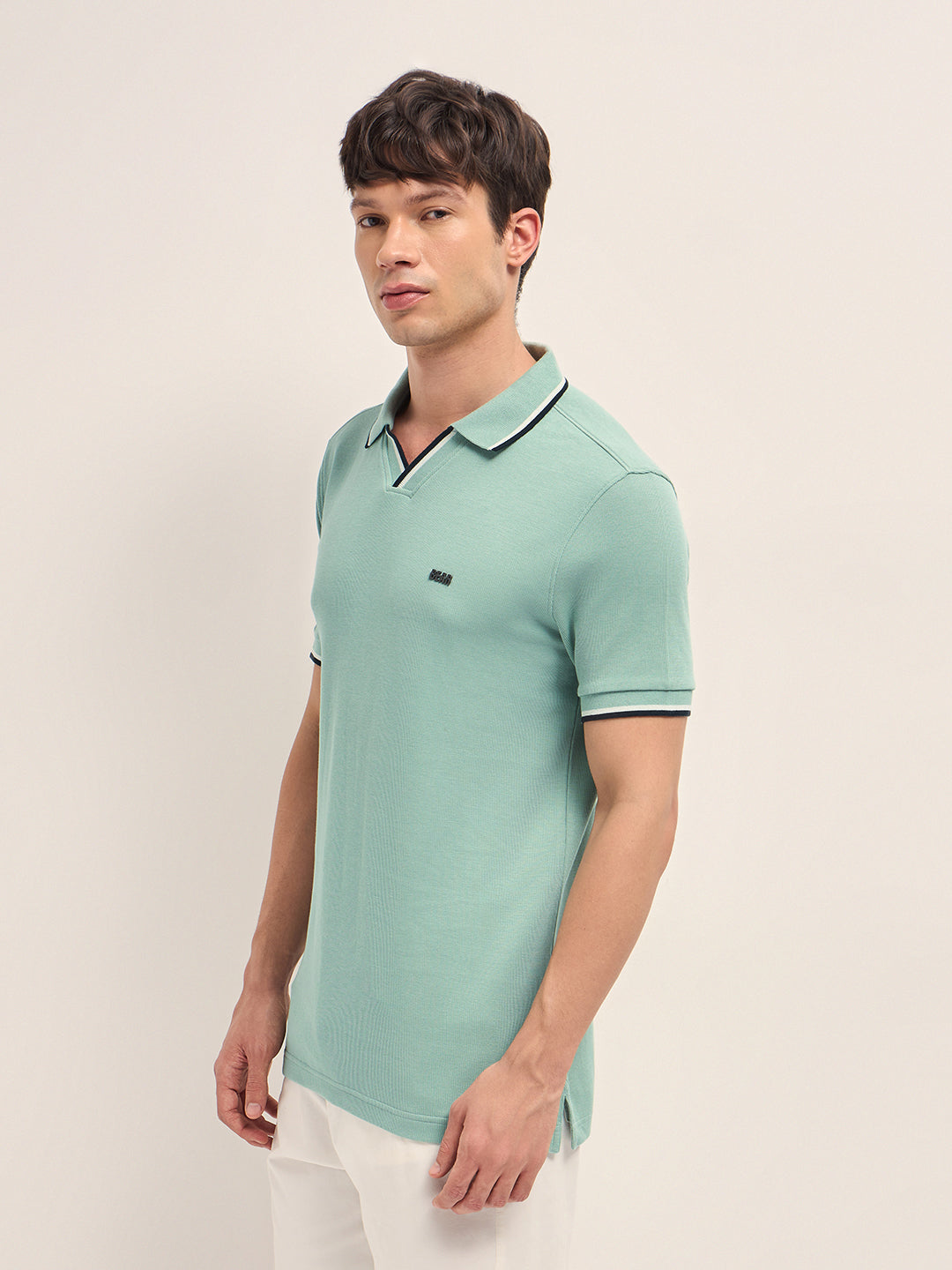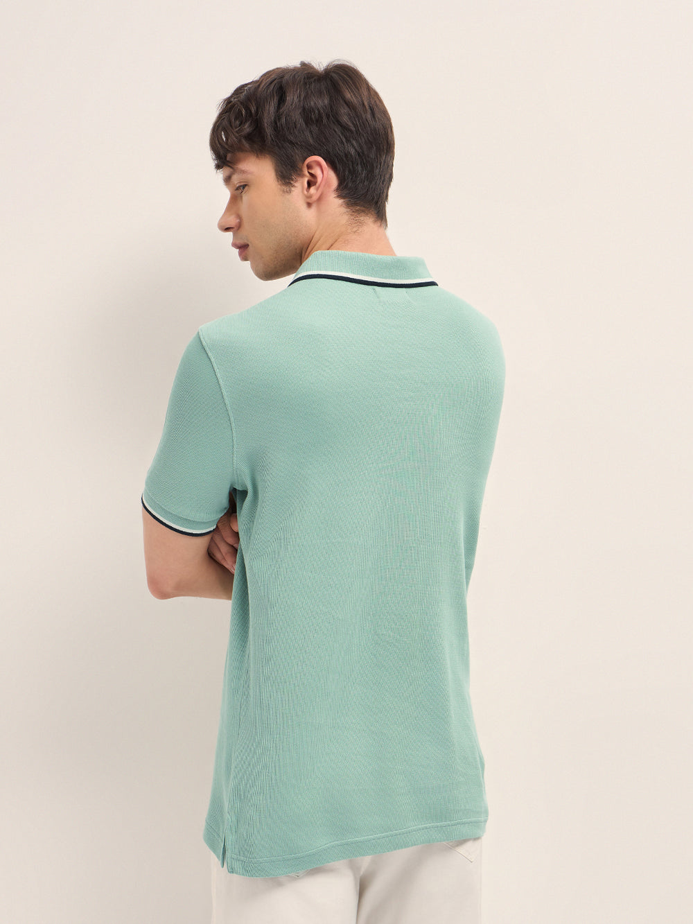 Light Green Solid Slim Fit Polo with Contrast Tipping Detail