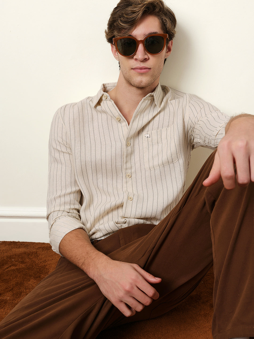 Shop Cream Vertical Woven Stripe Slim Fit Casual Shirt Online. Explore our wide range of men's clothing collections. Free Shipping Hassle-free returns