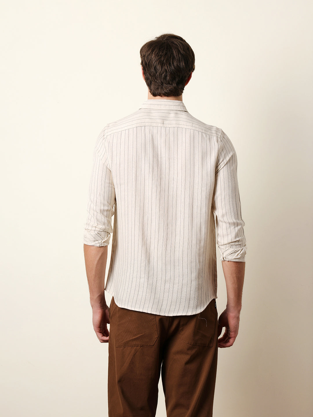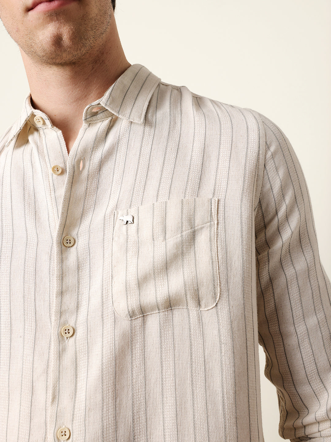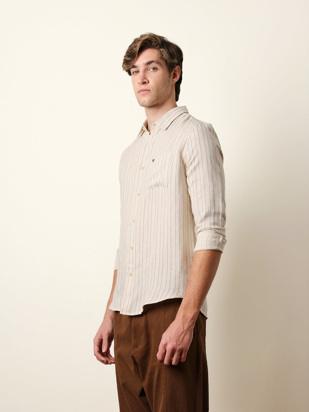 Cream Vertical Woven Stripe Slim Fit Casual Shirt