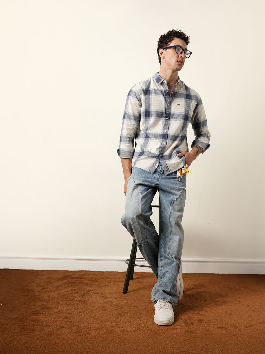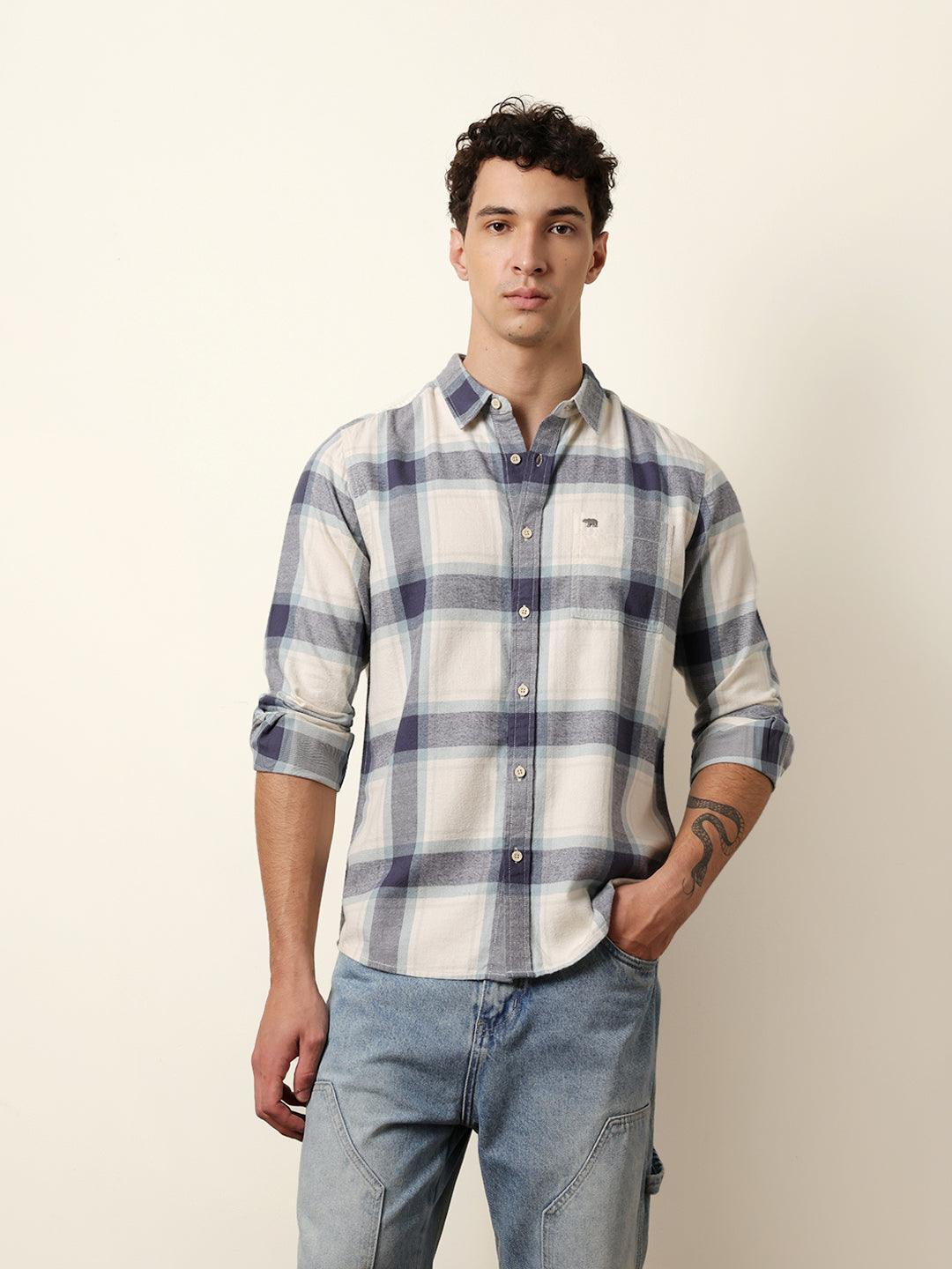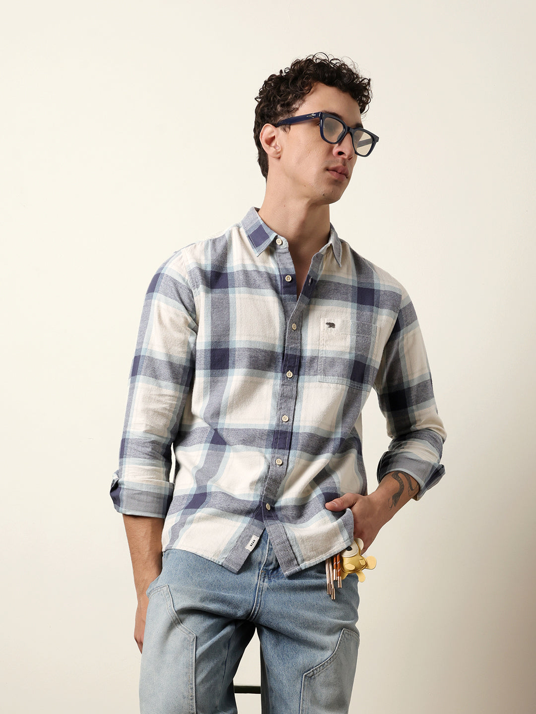 Shop Blue & Cream Checked Flannel Regular Fit Casual Shirt Online. Explore our wide range of men's clothing collections. Free Shipping Hassle-free returns