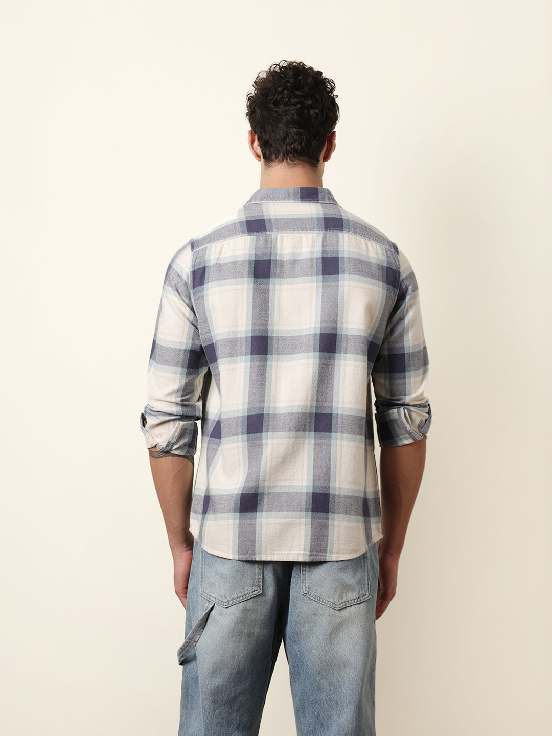 Blue & Cream Checked Flannel Regular Fit Casual Shirt