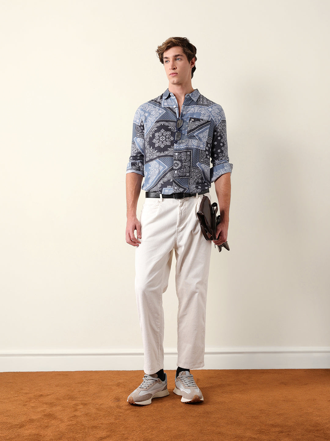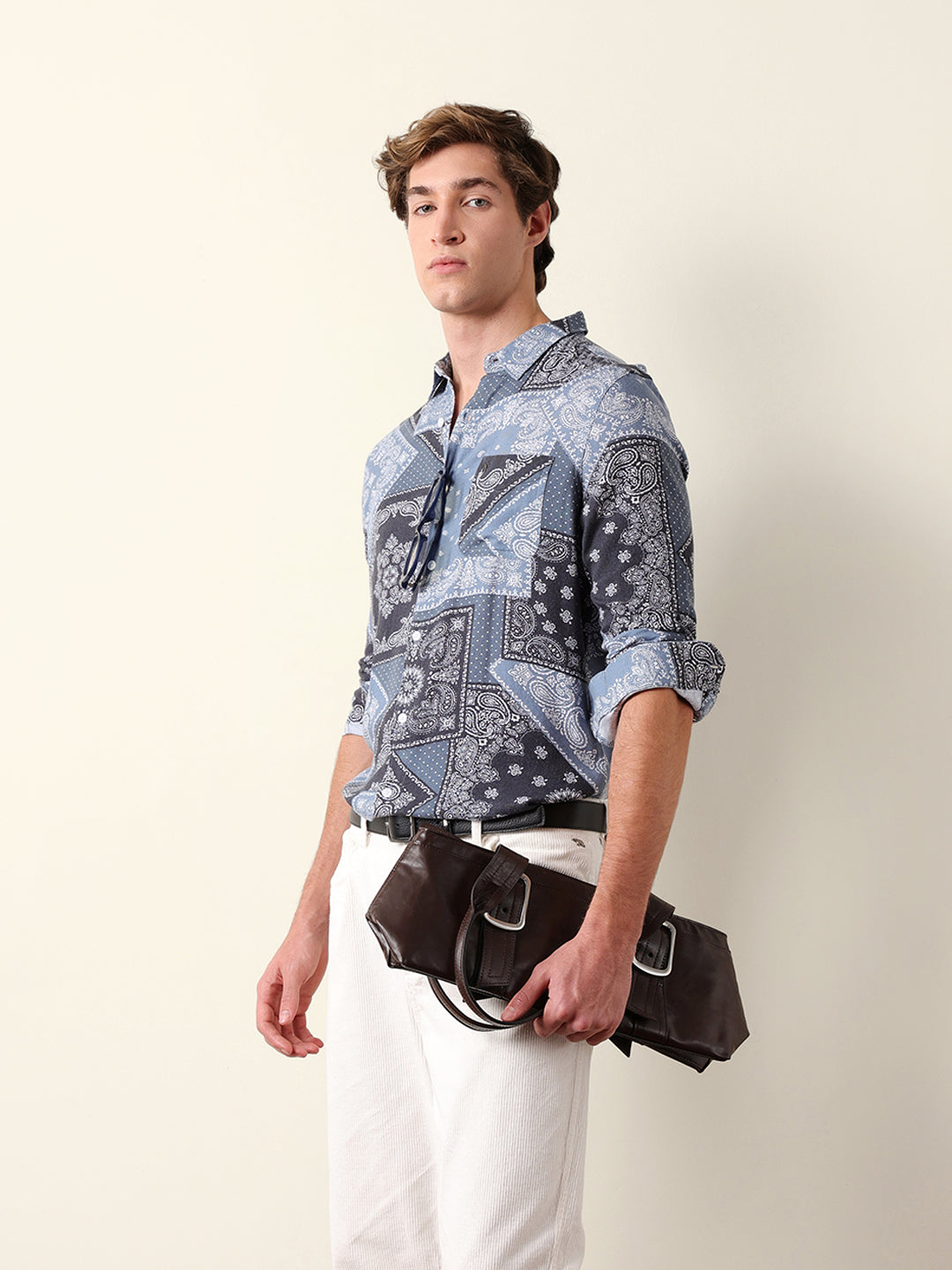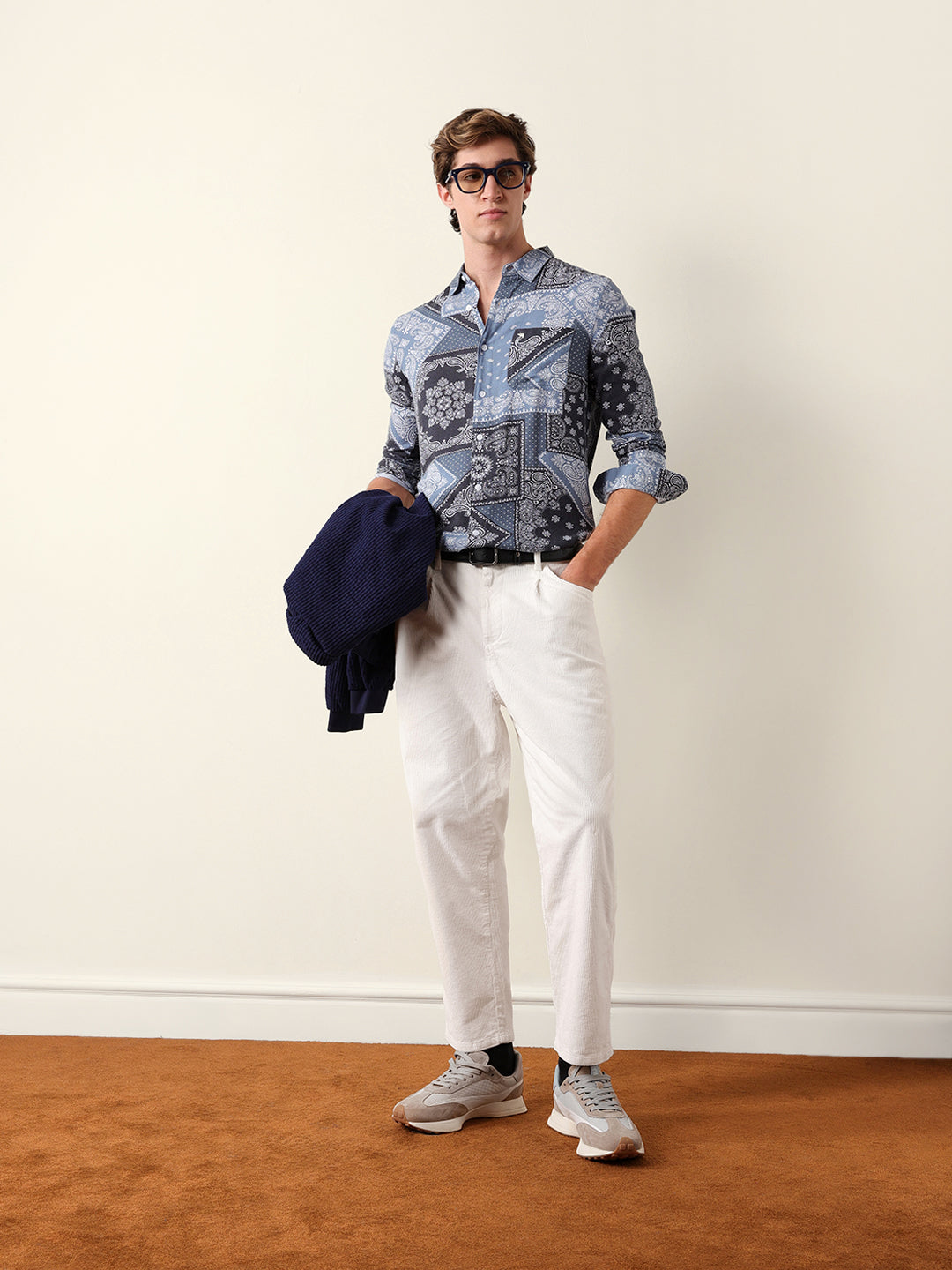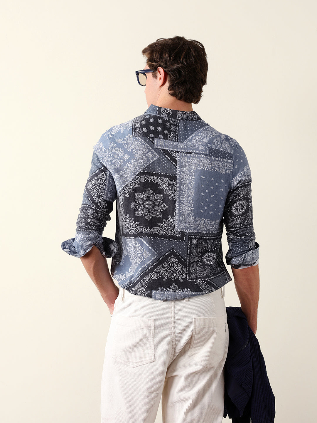 Blue Paisley Patchwork Printed Slim Fit Casual Shirt