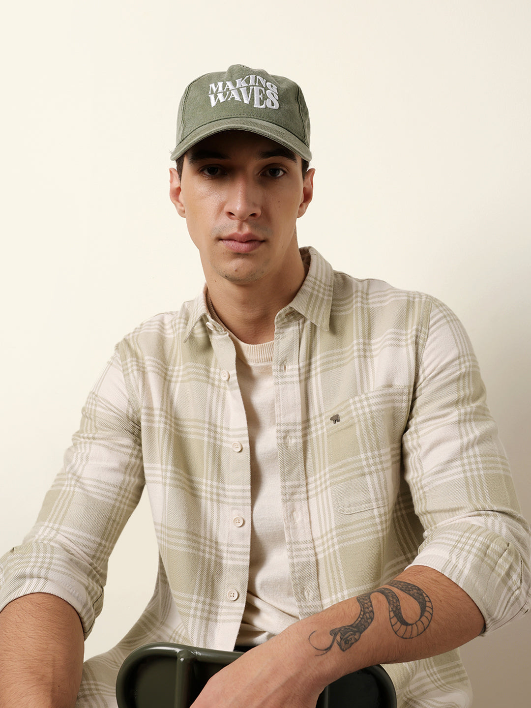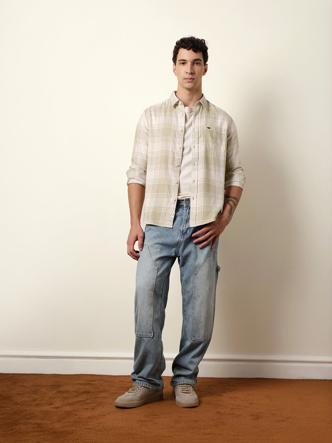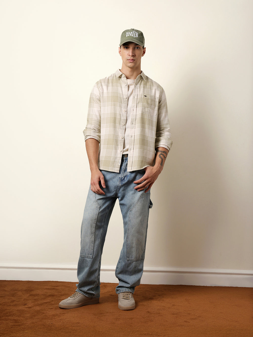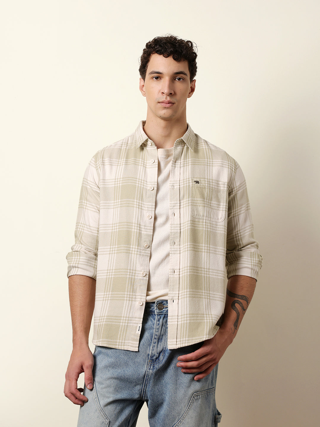 Shop Green & Cream Tartan Check Flannel Regular Fit Casual Shirt Online.