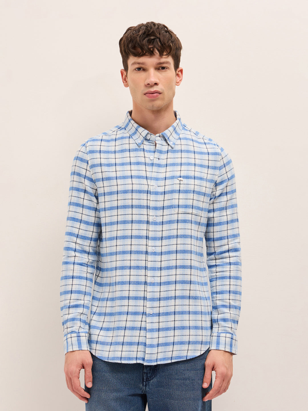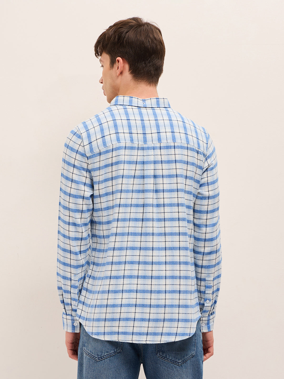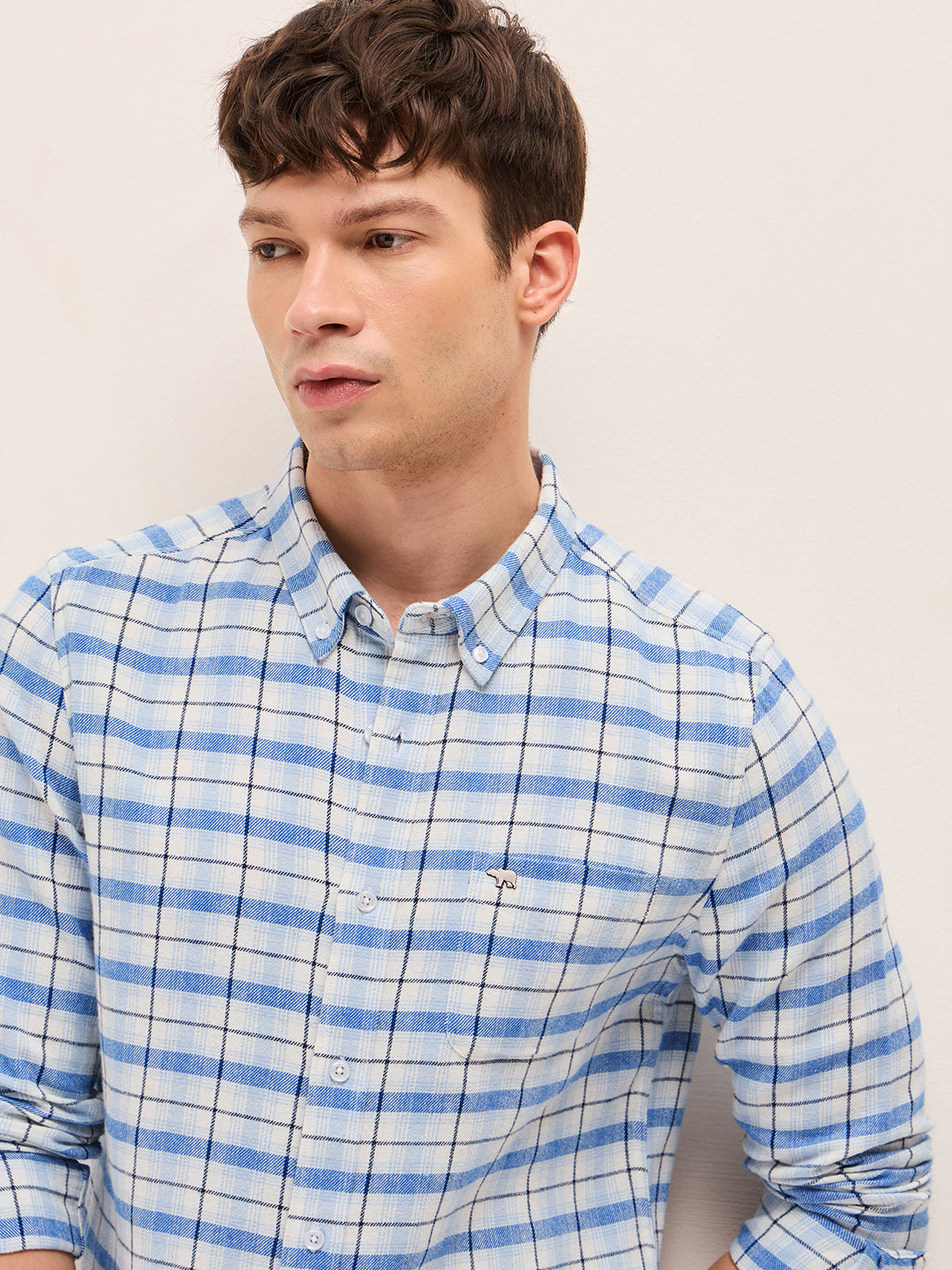 Shop White & Blue Woven Check Slim Fit Casual Shirt Online.