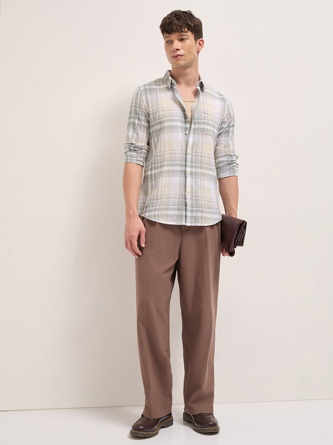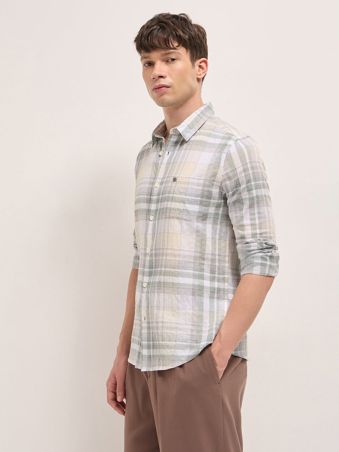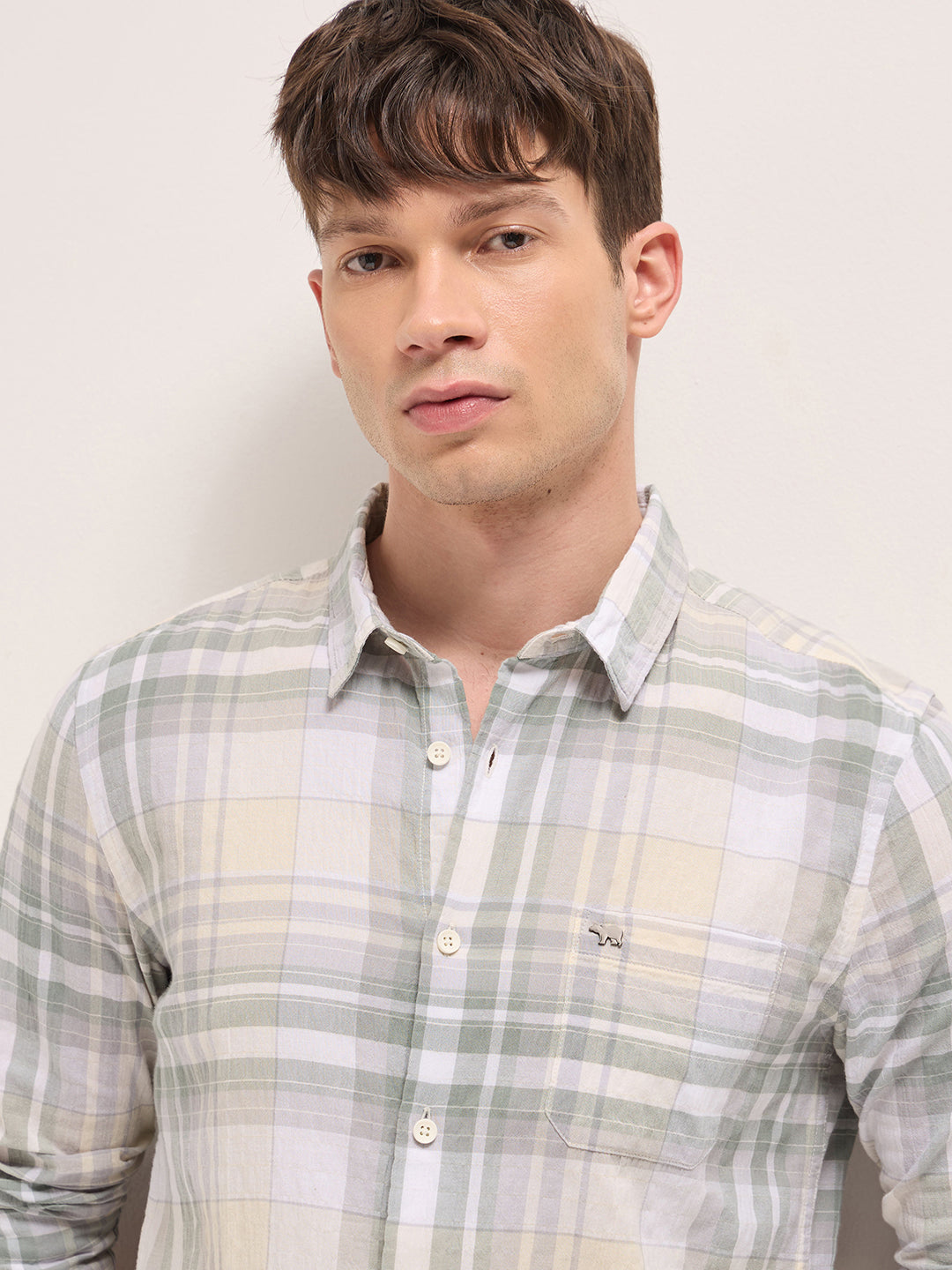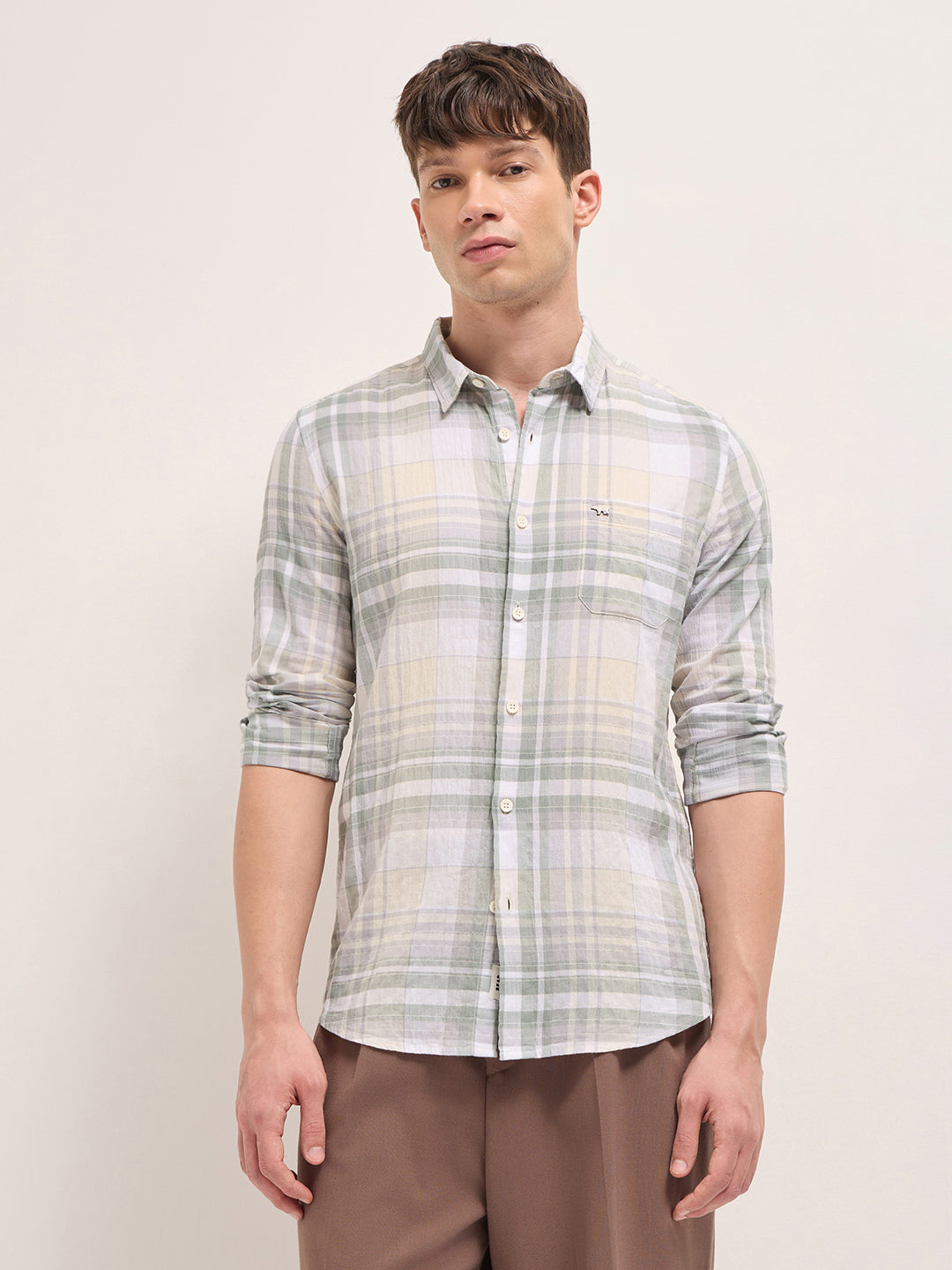 Shop Multicolor Woven Check Slim Fit Casual Shirt Online.