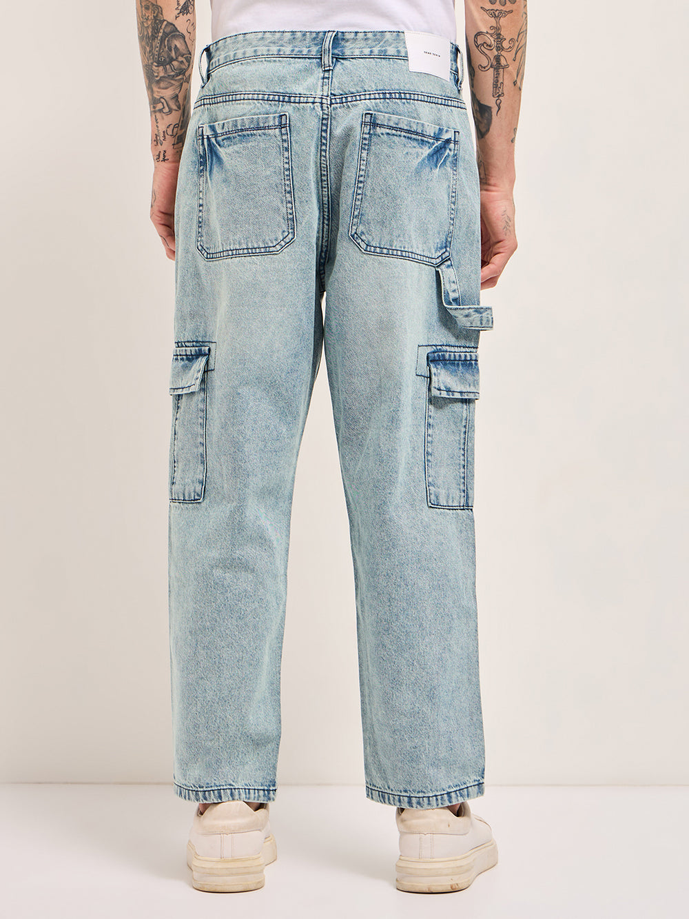 Light Blue with Mid Fade Mid-Rise Baggy Fit Cargo Jeans
