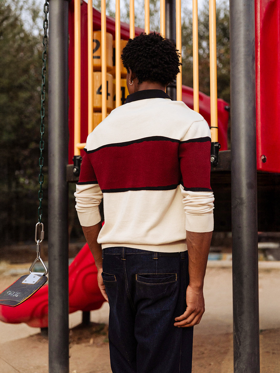 - Pattern: Colorblocked ribbed knit design with a smooth, structured texture