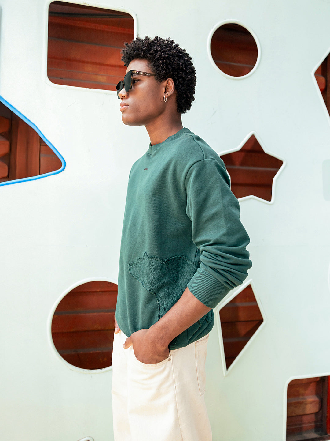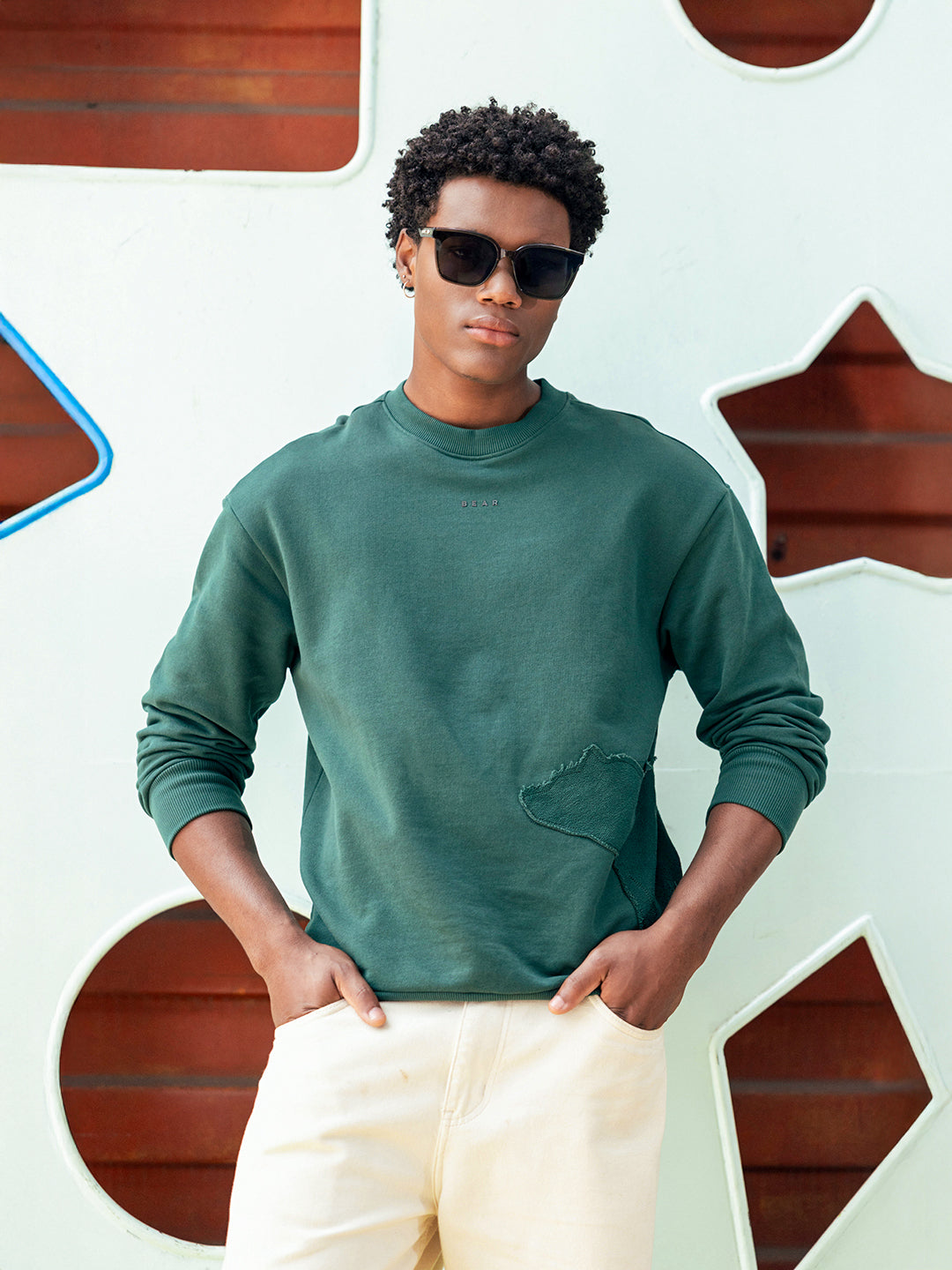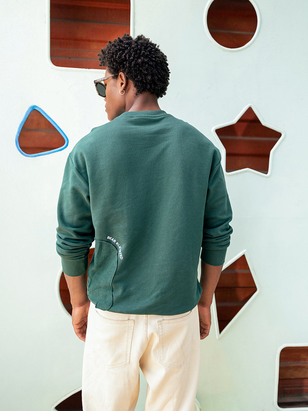 Forest Green Relaxed Fit Crew Neck Sweatshirt with Bear Patch
