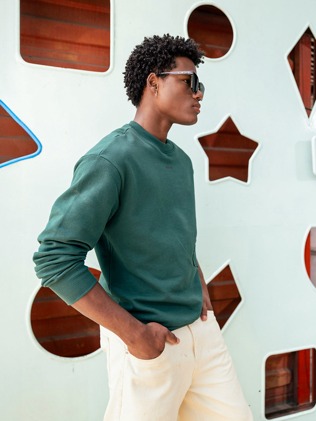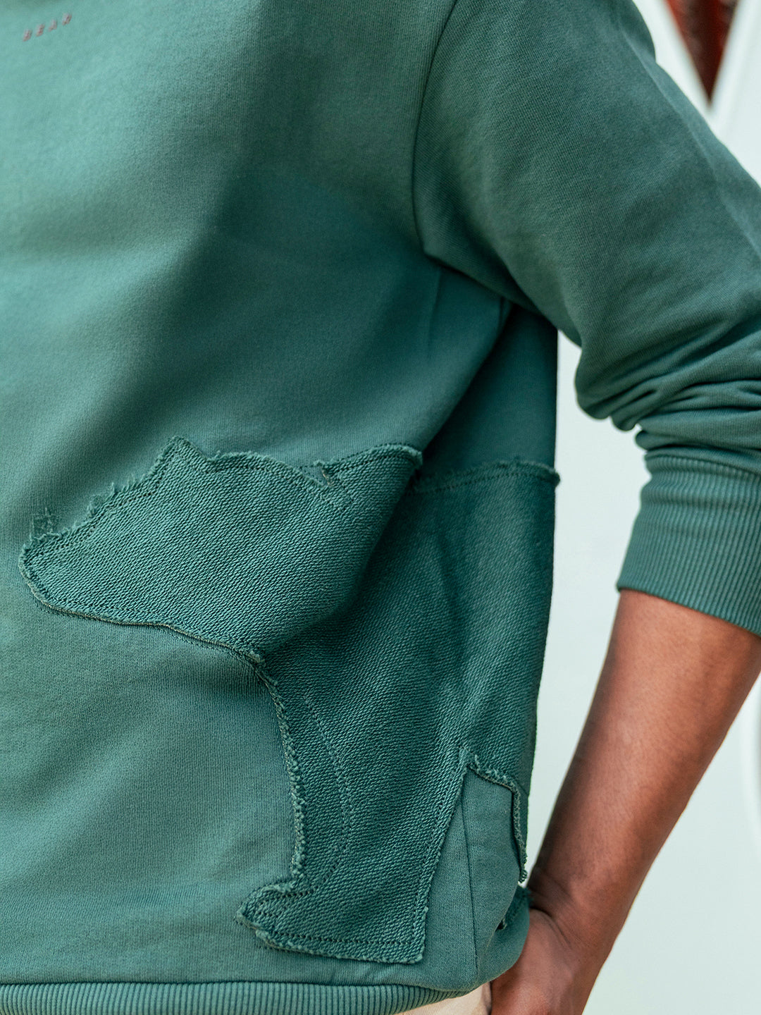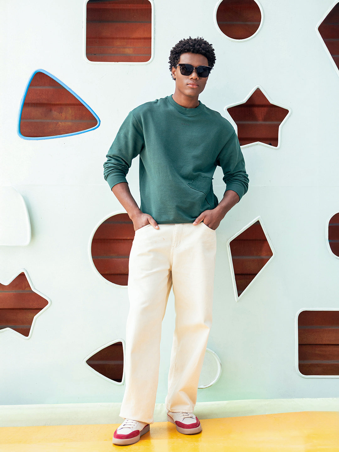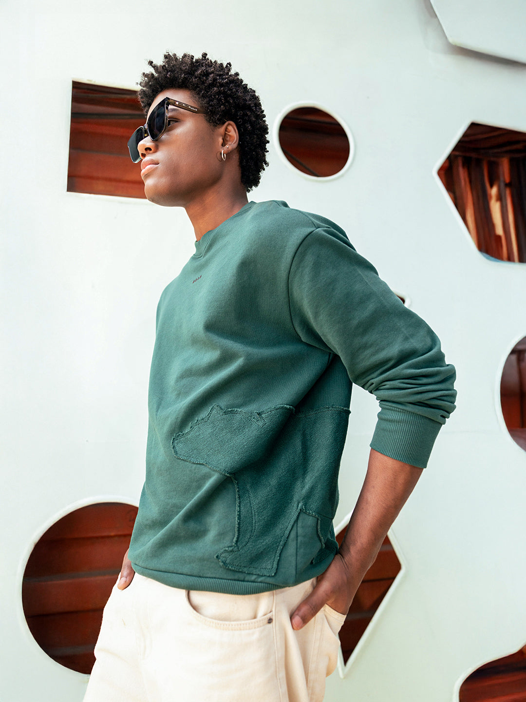 Forest Green Relaxed Fit Crew Neck Sweatshirt with Bear Patch