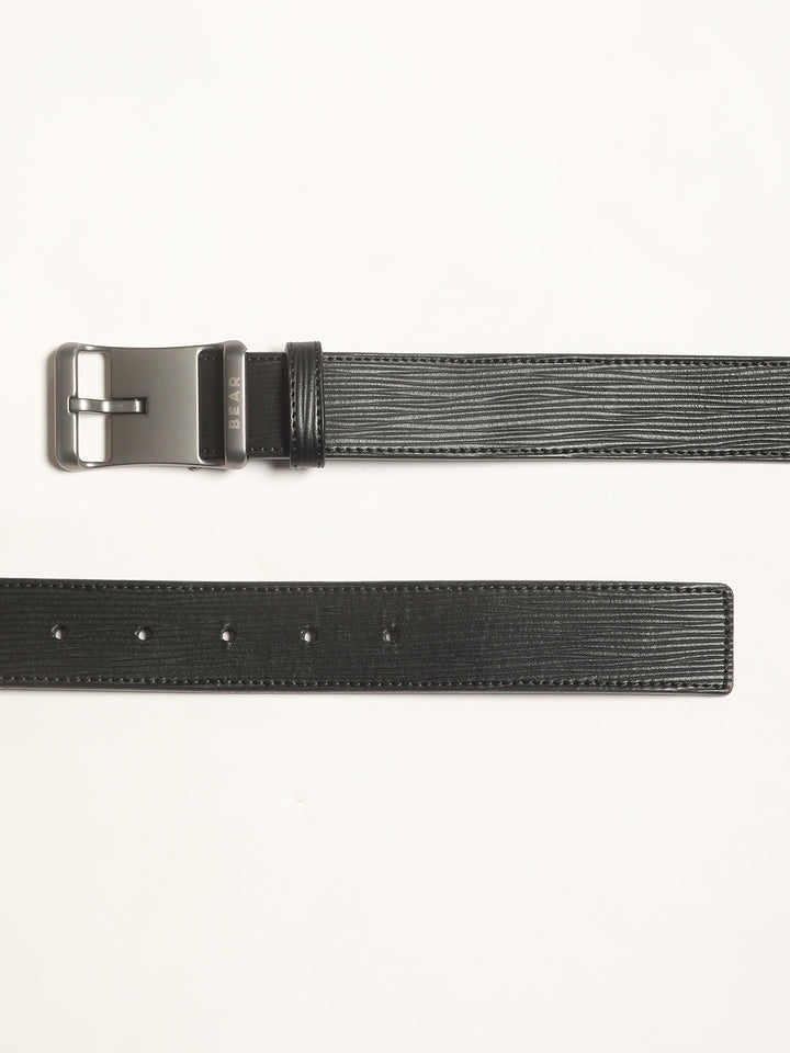 Men's Black Self-Striped Belt