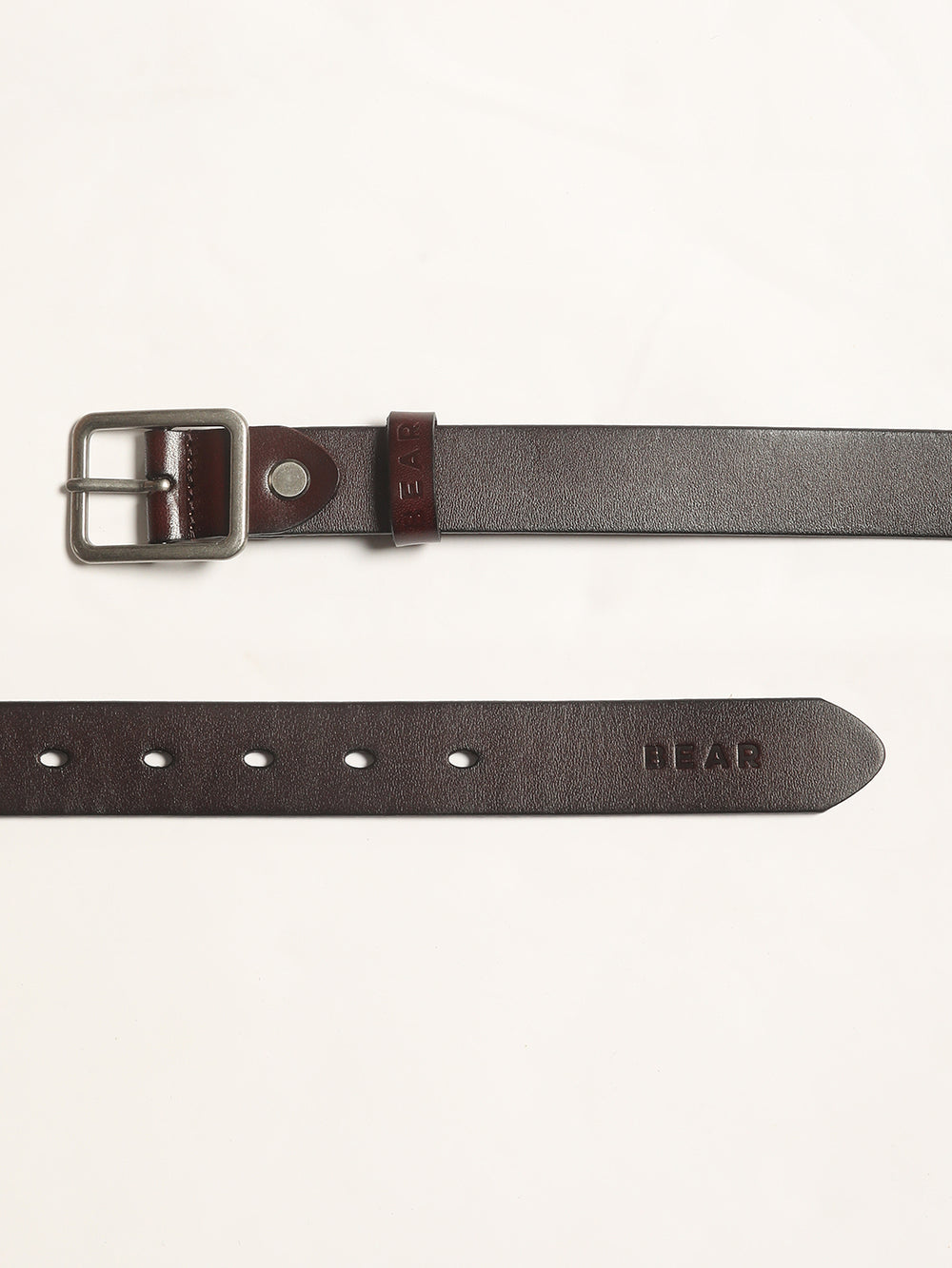 Men Brown Pure Leather Wide Width Formal Belt with Tang Closure