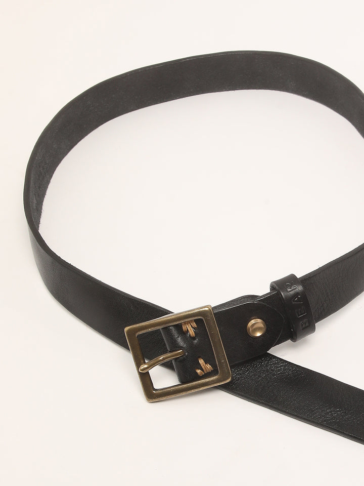 Shop Men Black Pure Leather Wide Width Casual Belt with Tang Closure Online.