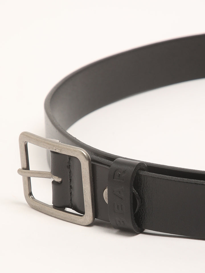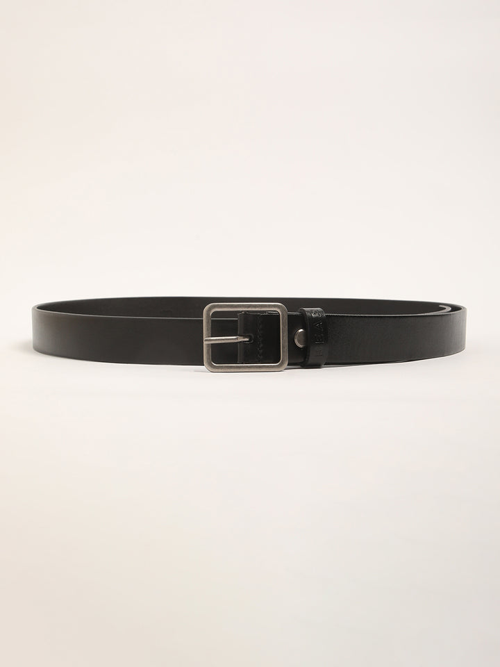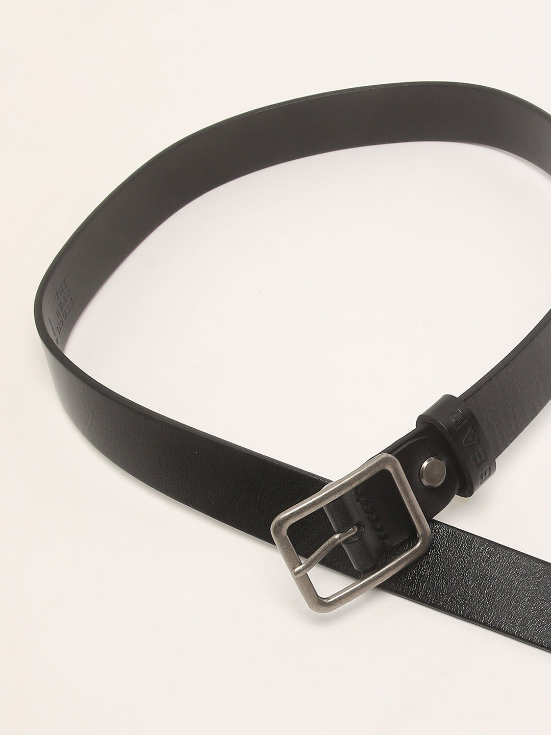 Men Black Pure Leather Slim Width Casual Belt with Tang Closure