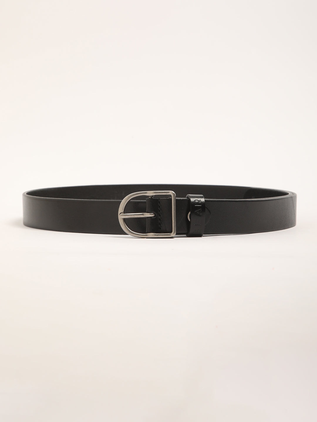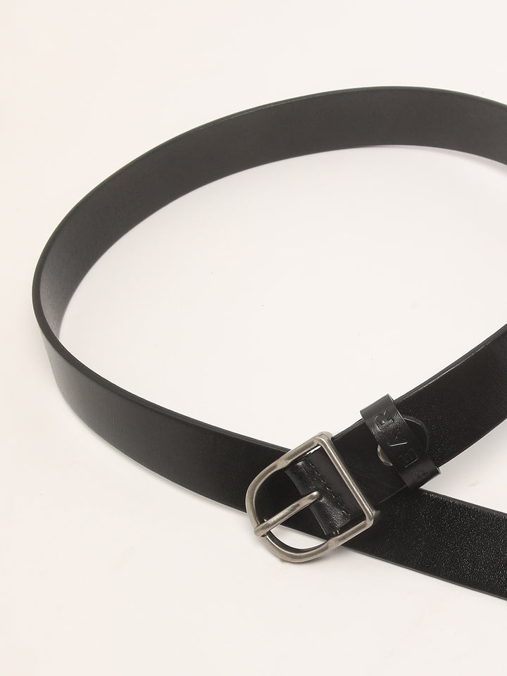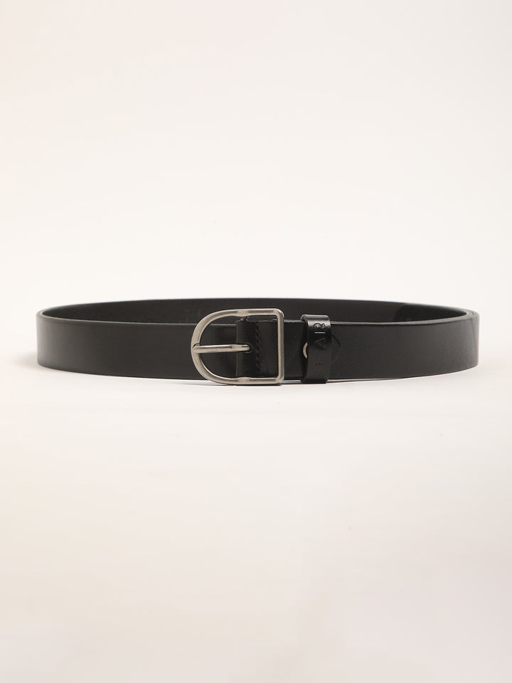 Men Black Pure Leather Slim Width Casual Belt with Tang Closure