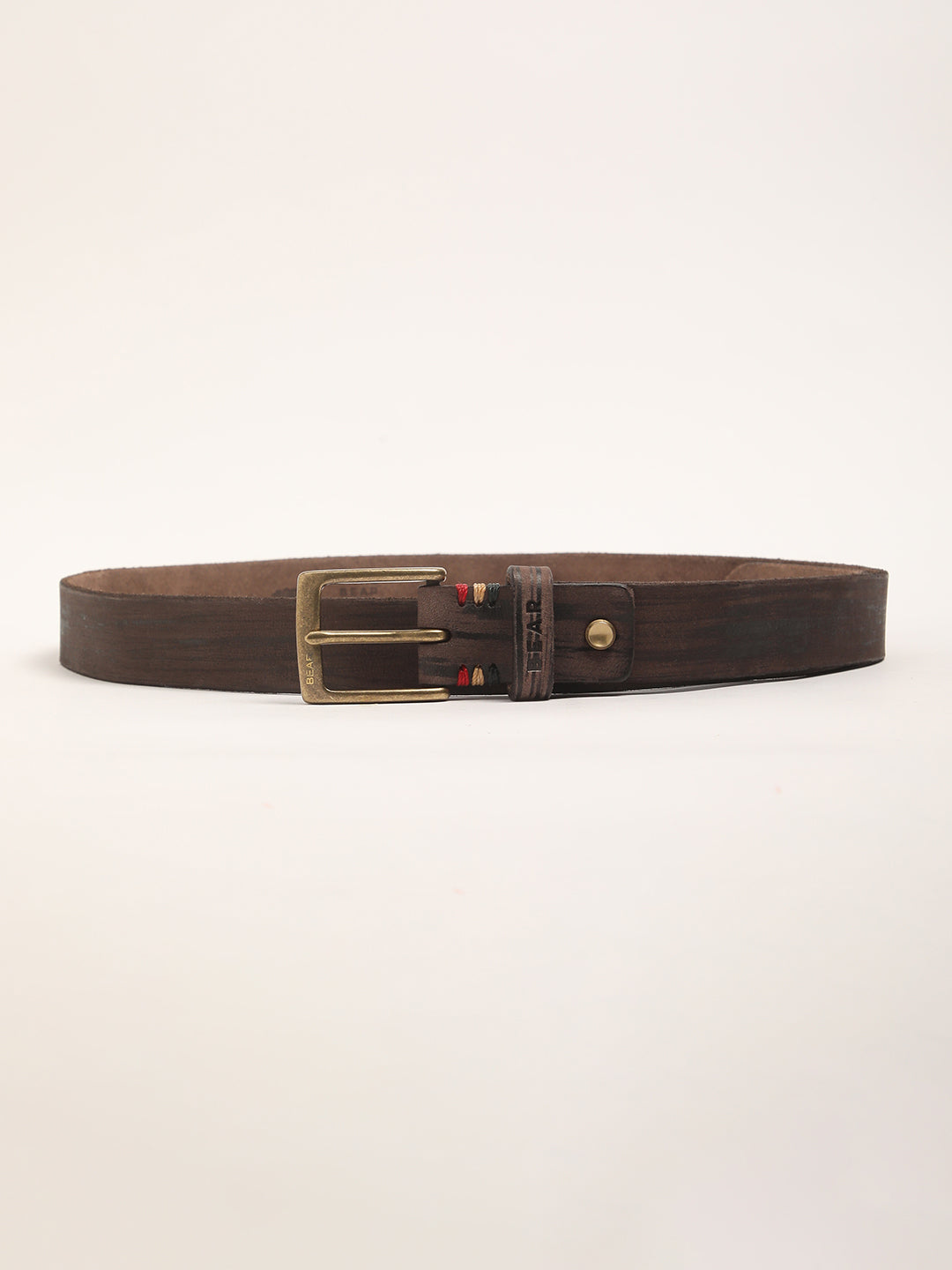 Shop Men Brown Pure Leather Slim Width Casual Belt with Tang Closure Online.