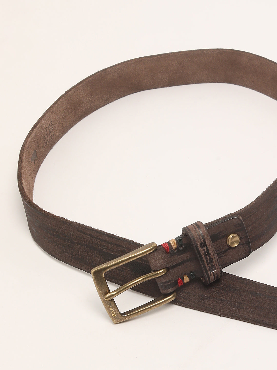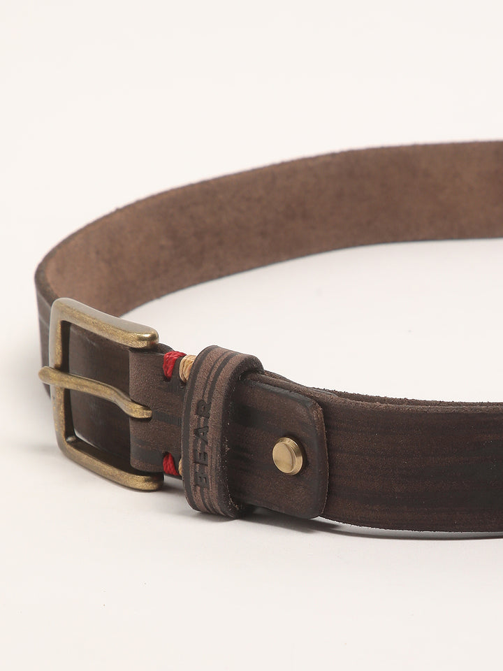 Men Brown Pure Leather Slim Width Casual Belt with Tang Closure