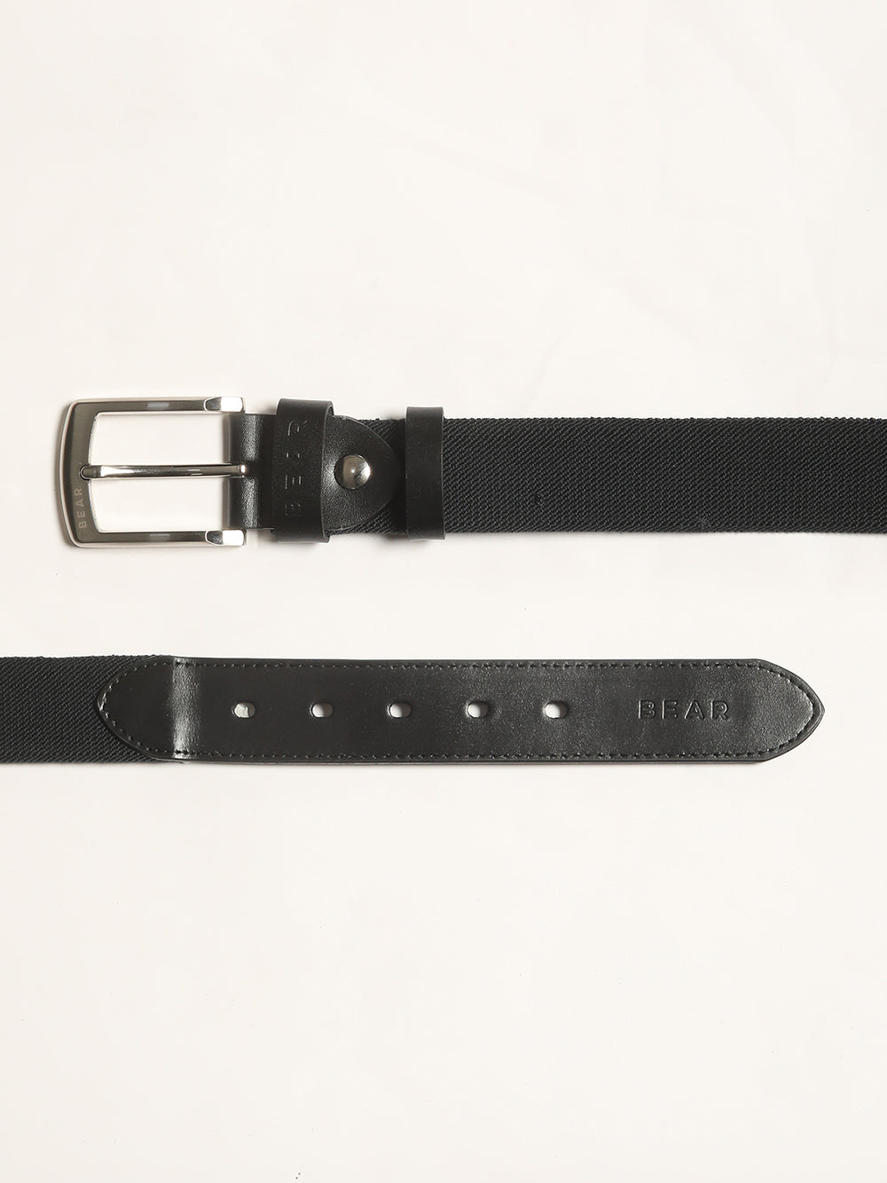 Men Black Woven Design Wide Width Casual Belt with Tang Closure