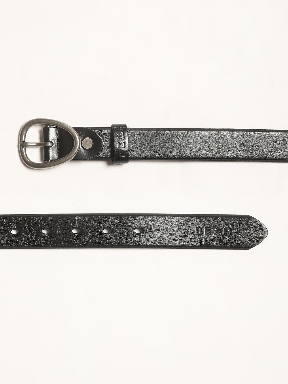 Men Black Pure Leather Slim Width Casual Belt with Tang Closure