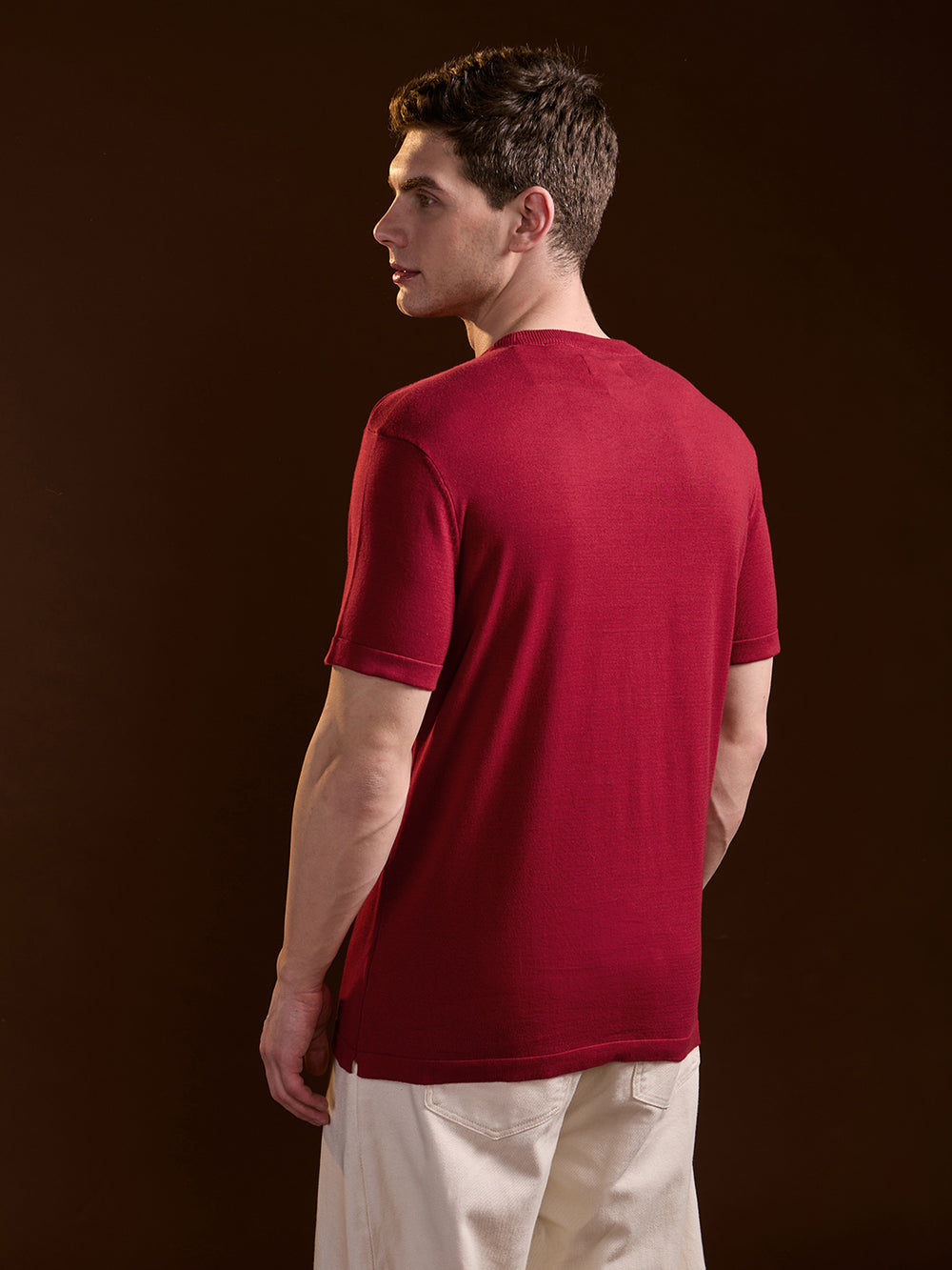 Red Solid Regular Fit Ribbed Crew Neck T-shirt