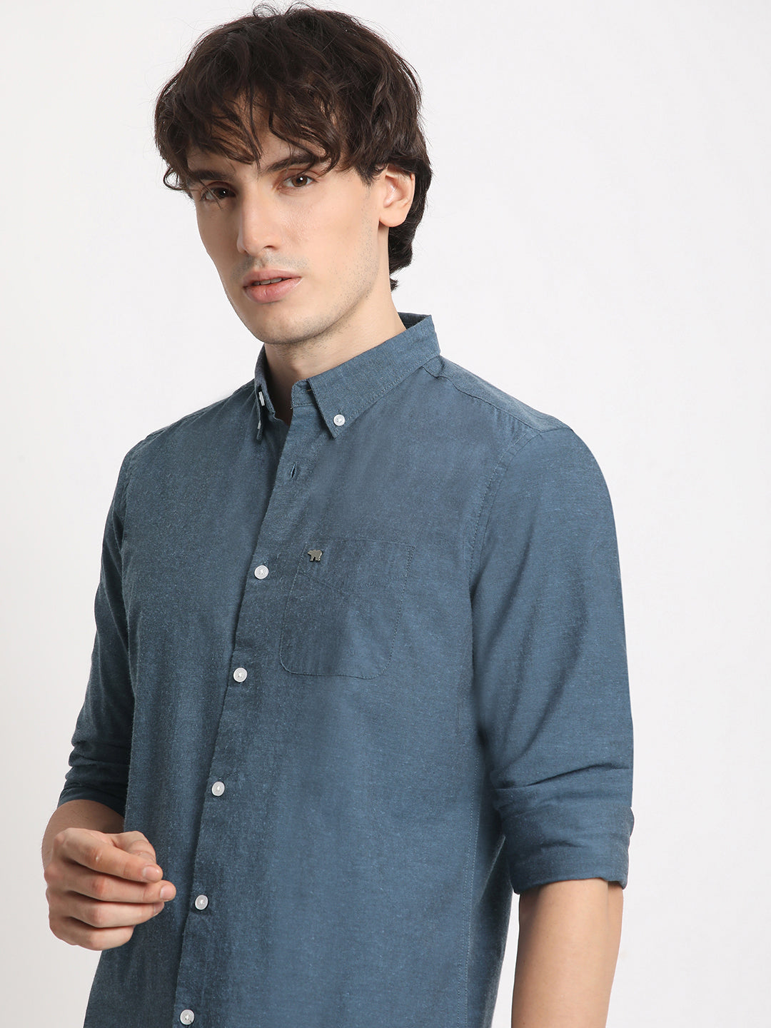 Men's Blue Solid Slim Fit Cotton Casual Shirt