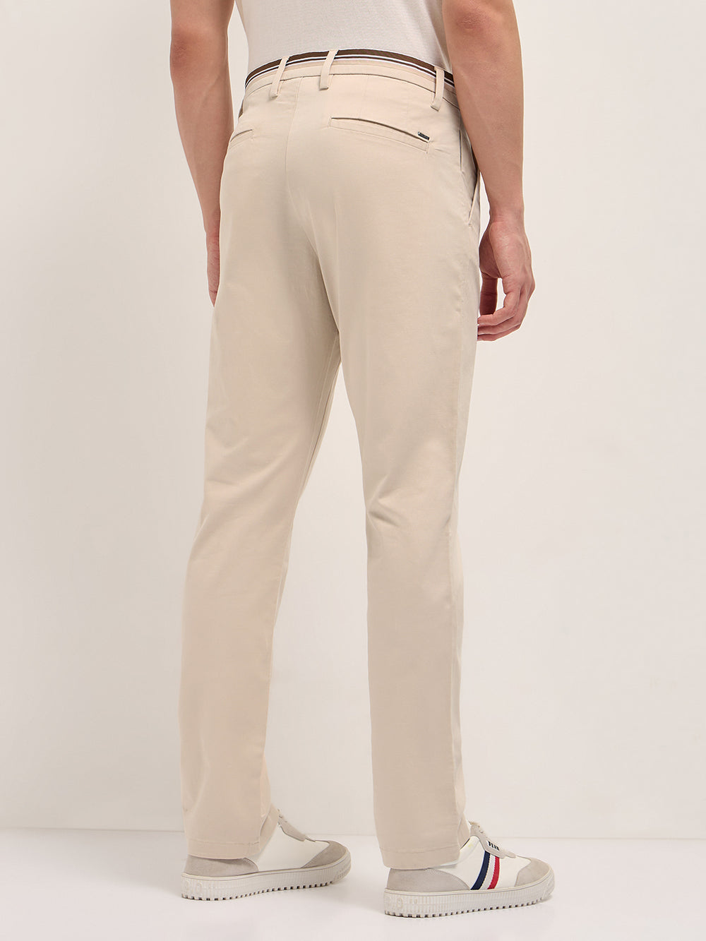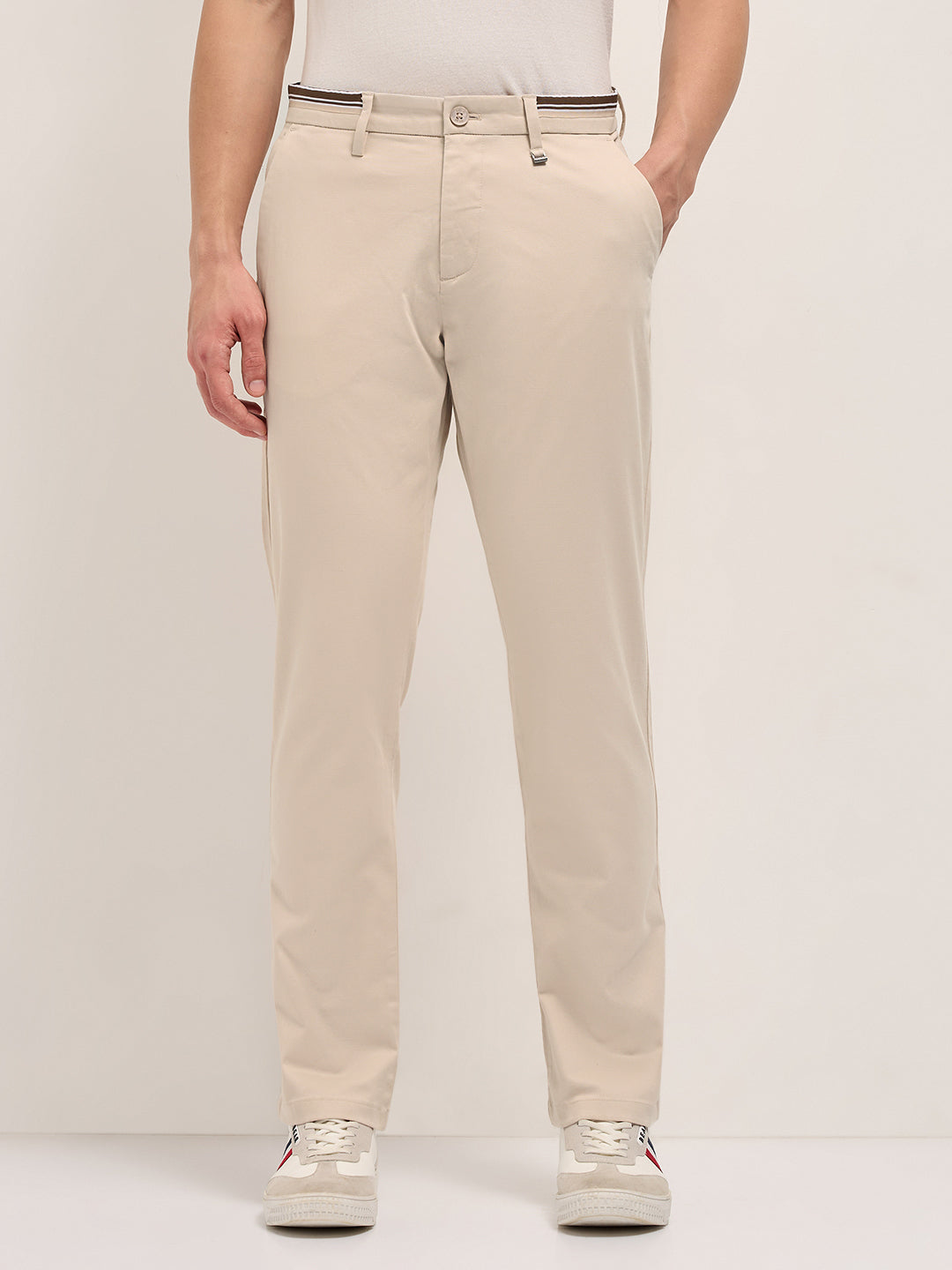 Cream Straight Fit Casual Trousers with Contrast Striped Waistband