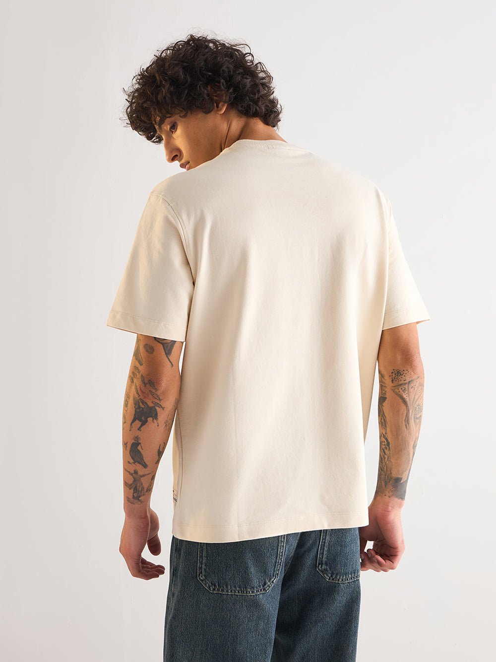 Cream Oversize Bold blue "BEAR" Graphic Print Crew Neck T-shirt
