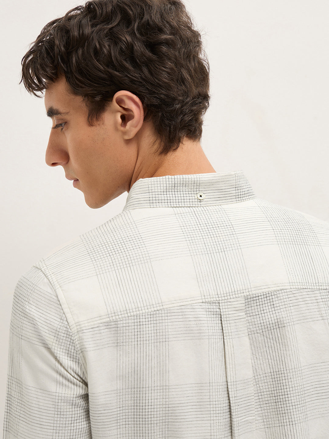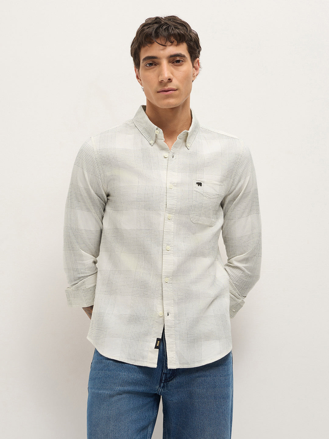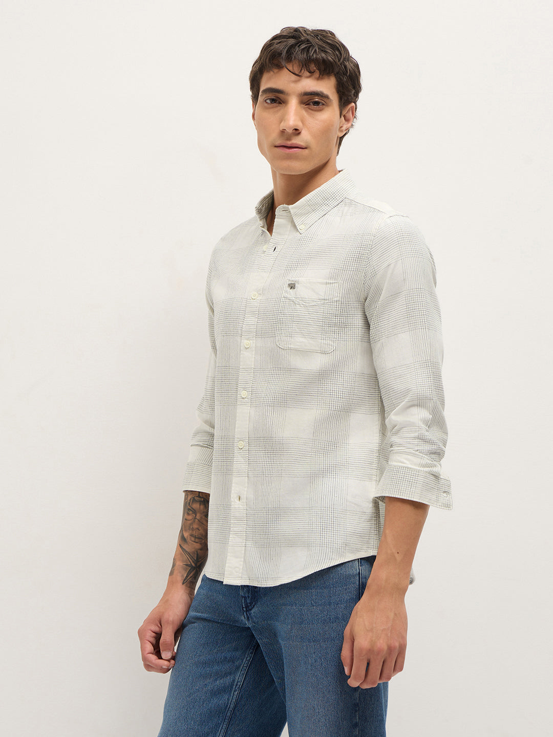 White Woven Checked Slim Fit Casual Shirt