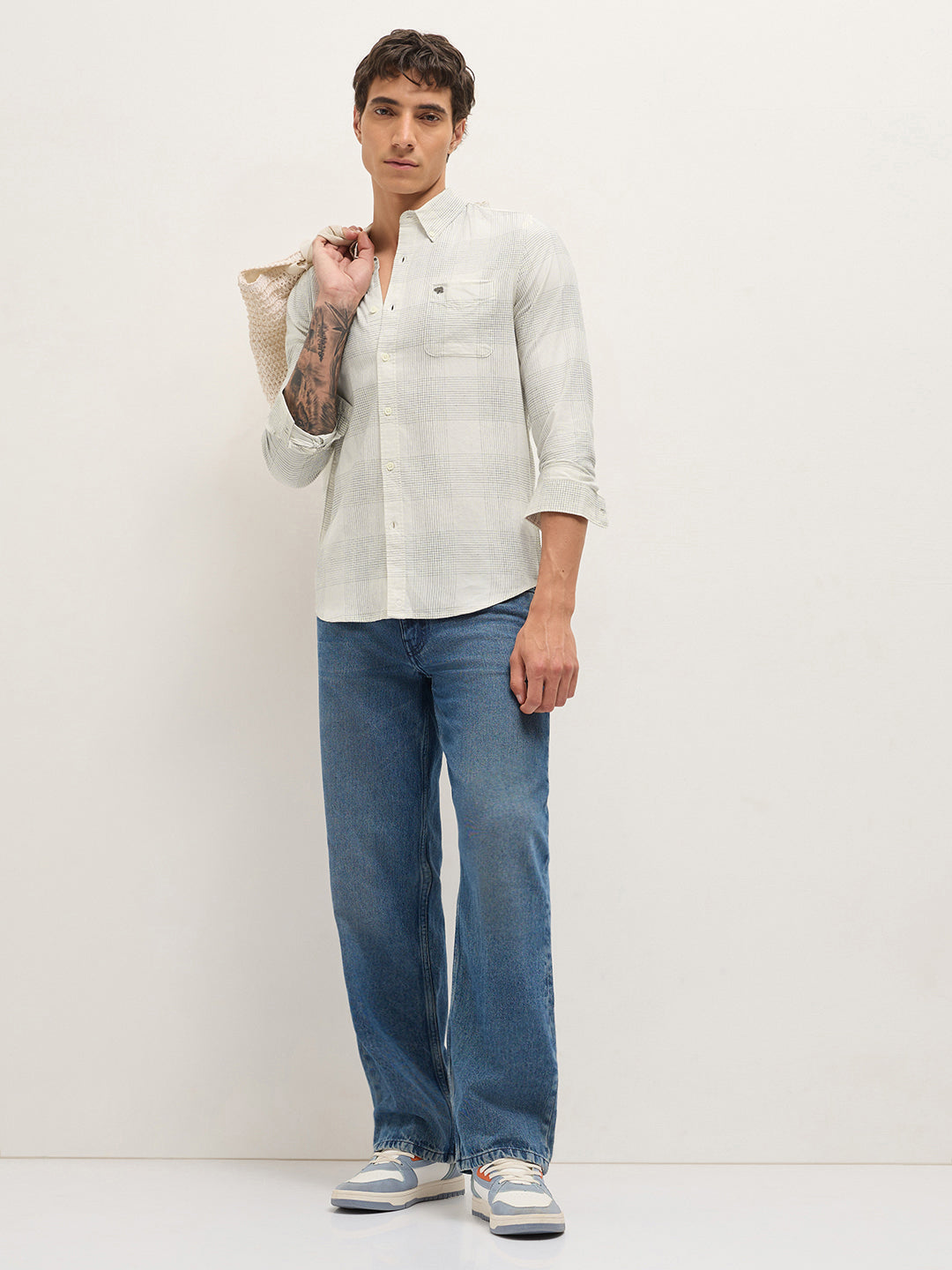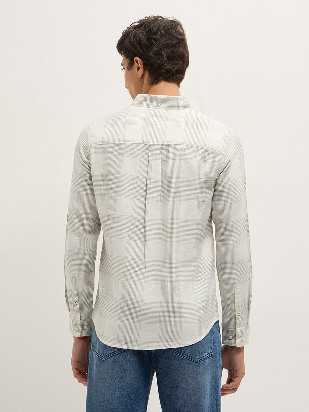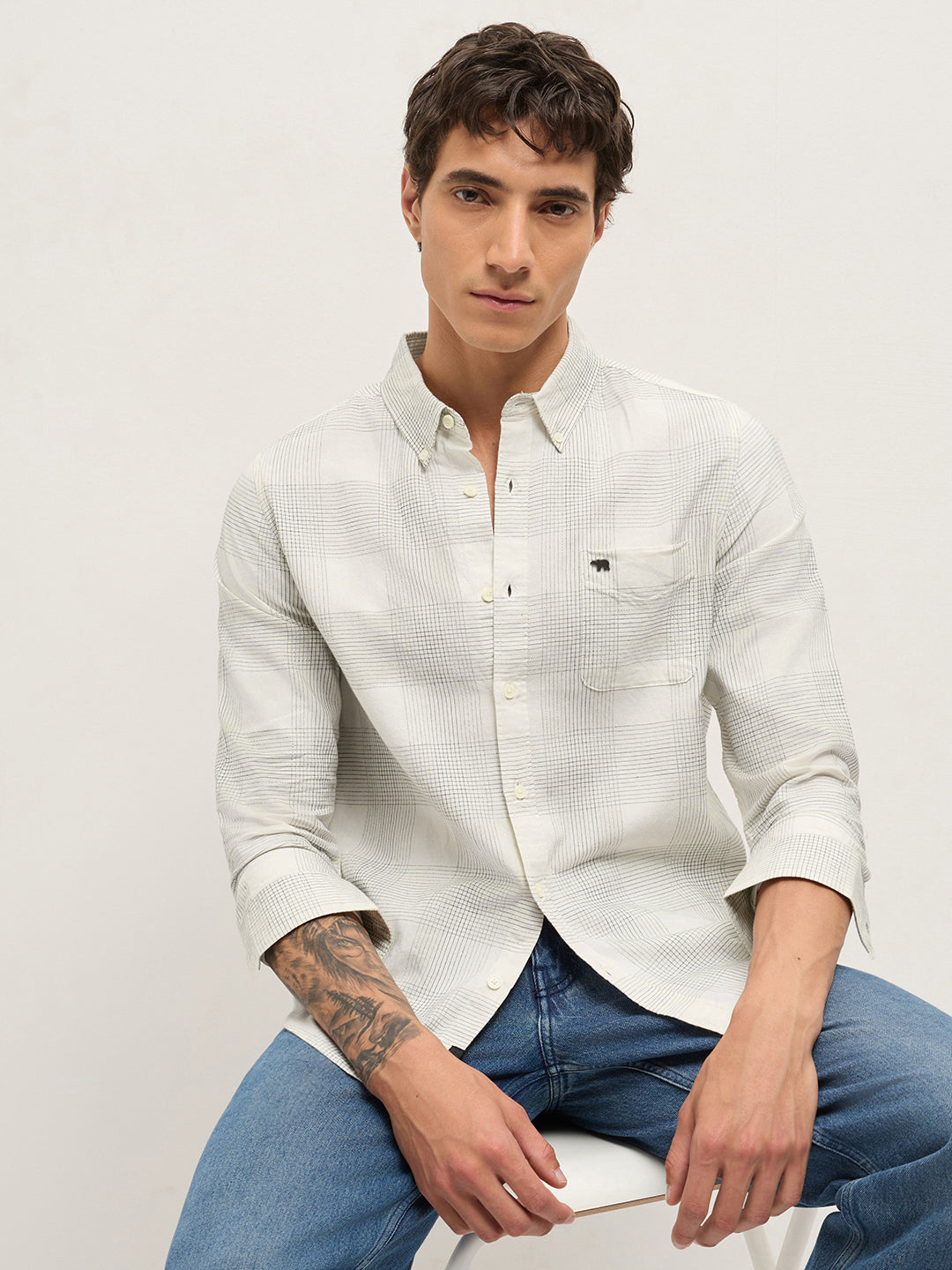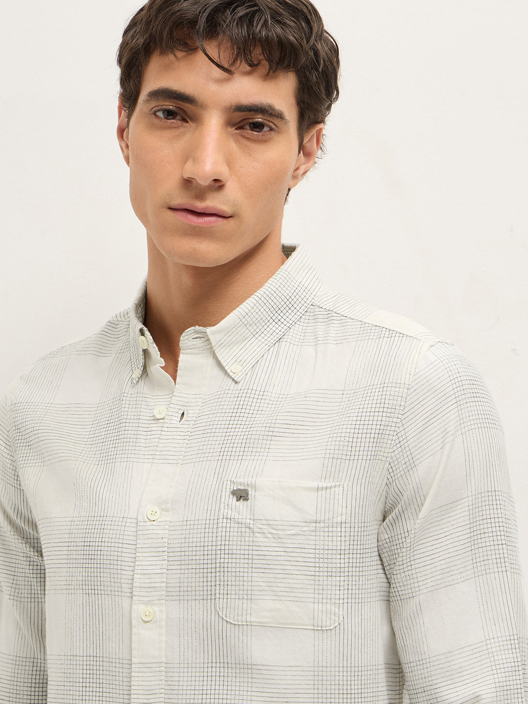 White Woven Checked Slim Fit Casual Shirt