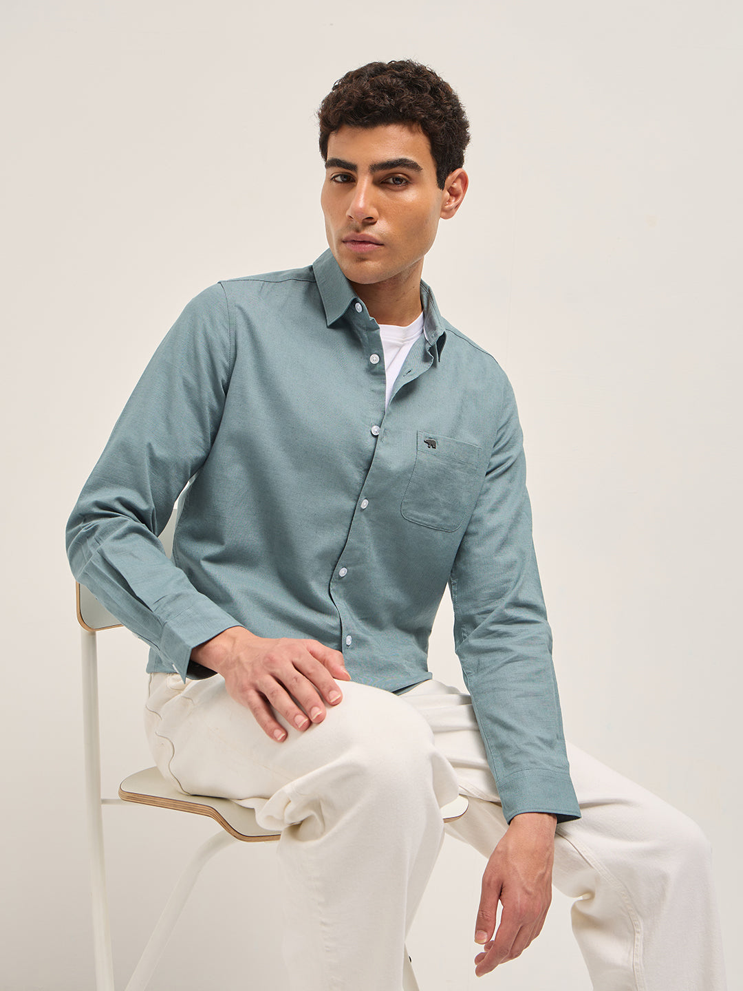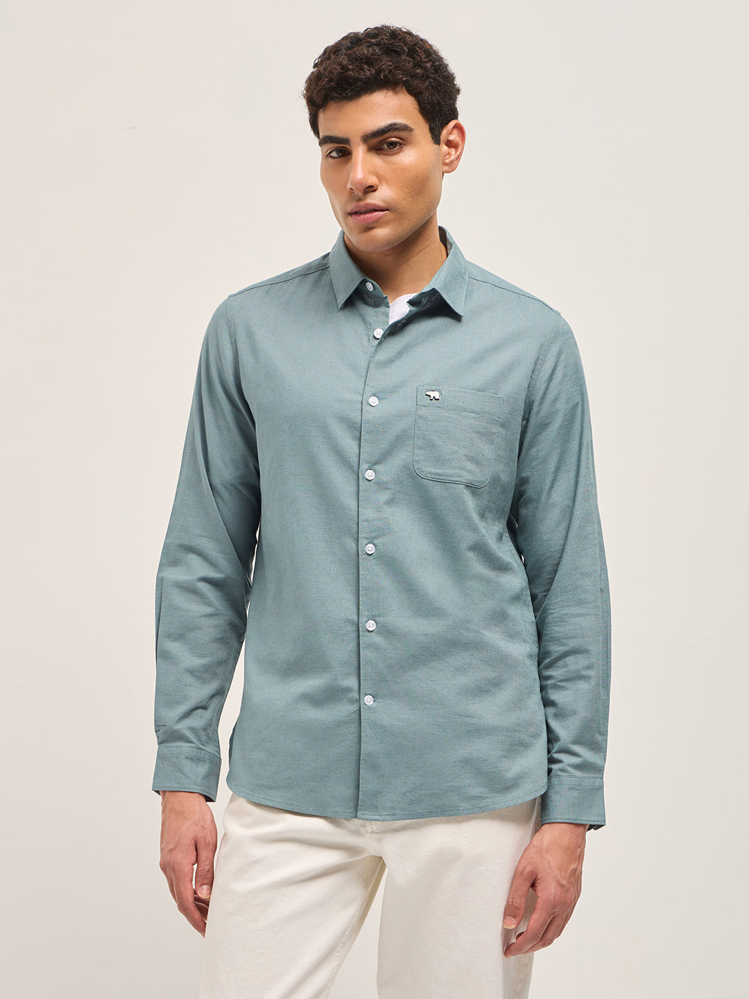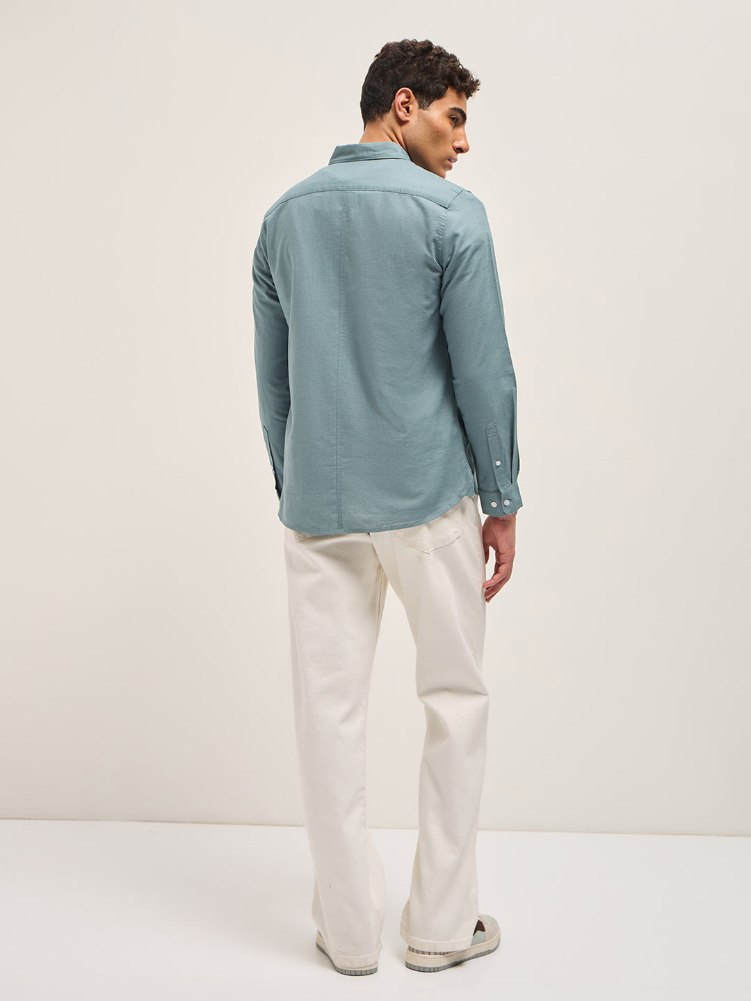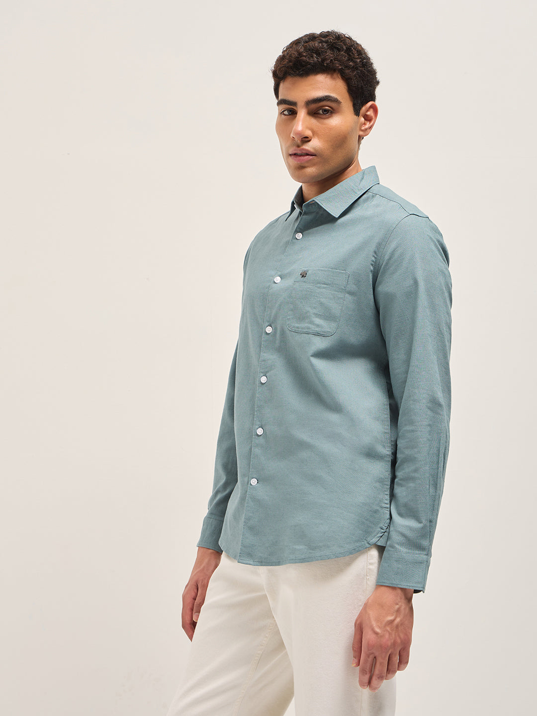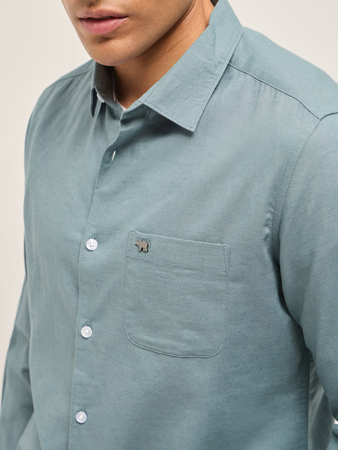 Teal Blue Cotton Linen Slim Fit Solid Casual Shirt